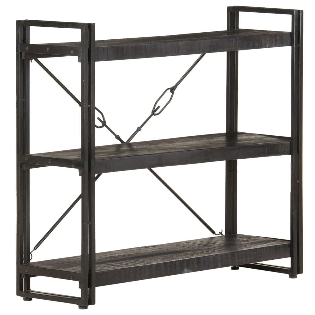Bücherregal 3 Fächer Schwarz 90x30x80 cm Mango Massivholz