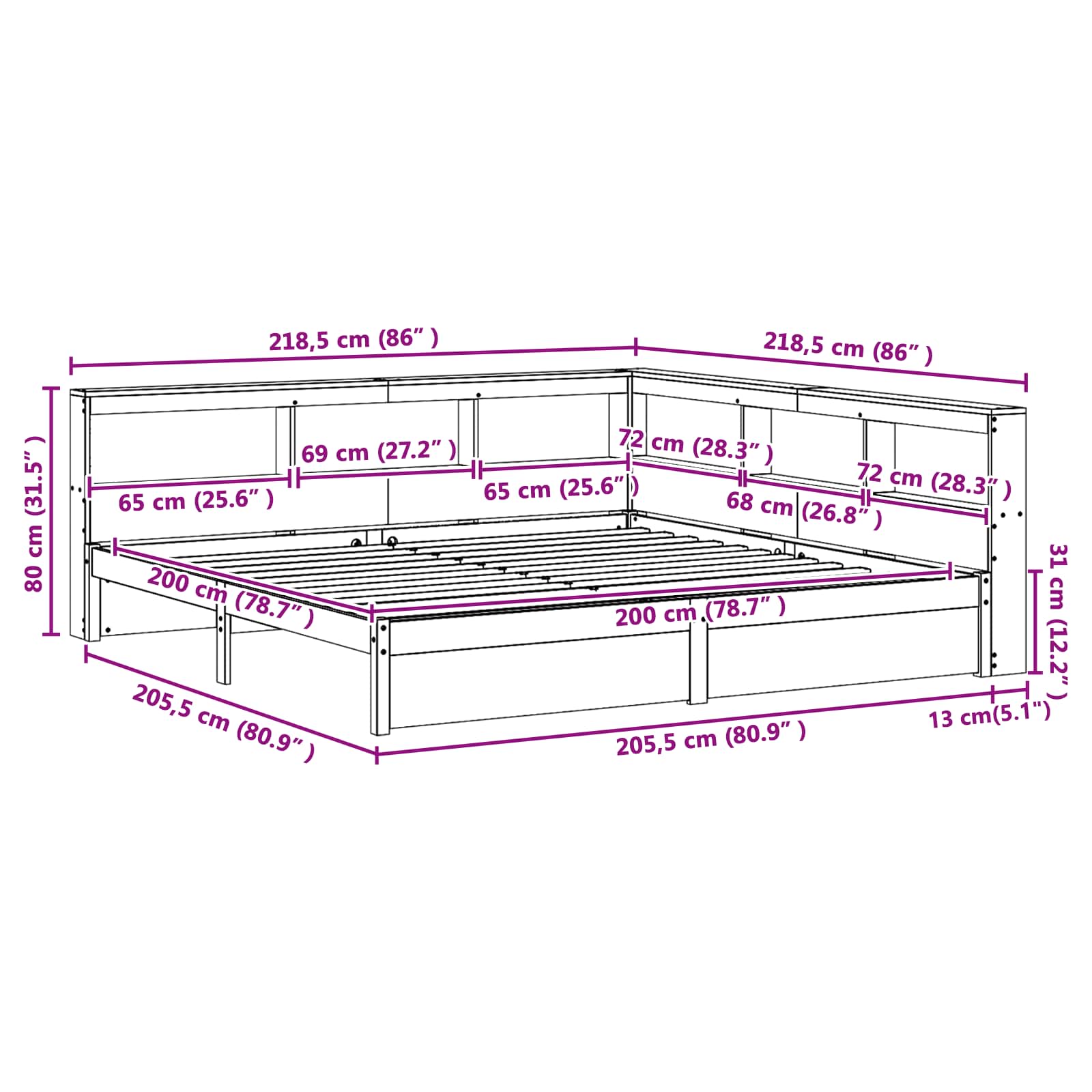 - Matratzengröße: Kaiserbett (200 cm x 200 cm oder 79" x 79")