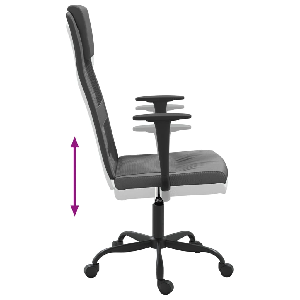 Genieße eine komfortable Sitzposition auf diesem Bürostuhl und verbessere den Komfort beim Arbeiten! Atmungsaktives Mesh: Das Netz ist ein Material, das aus verbundenem Garn hergestellt wird. Dank seiner offenen Struktur ist der Mesh-Stoff atmungsaktiv. Robustes und stabiles Gestell: Das Gestell aus Metall und Sperrholz verleiht dem Schreibtischstuhl Robustheit und Stabilität. Höhenverstellbar: Verwende den Hebel, um die Sitzhöhe nach Belieben einzustellen. Praktisches Design: Der Stuhl kann um 360 Grad gedreht werden, um eine größere Bewegungsfreiheit zu ermöglichen. Darüber hinaus lässt sich der Stuhl dank Rollen bequem umher verschieben.