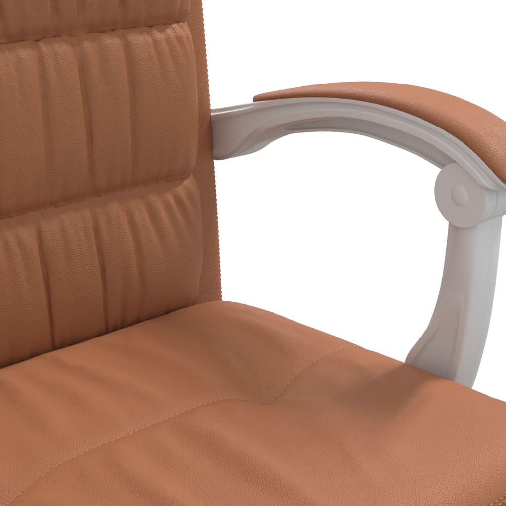 Mit seinem minimalistischen Design vereint dieser trendige Bürostuhl Eleganz und Komfort und ist ein Blickfang in deinem Arbeitsbereich. Langlebiges Kunstleder: Hochwertiges Kunstleder ist ein äußerst langlebiges Material. Es ist schmutzabweisend und lässt sich mit einem feuchten Tuch einfach reinigen. Durch die glatte Oberfläche weist es die Schönheit von Echtleder und einen luxuriösen Look auf.Verstellbare Rückenlehne und Höhe: Der Sessel ist mit Liegefunktion ausgestattet, sodass du Rückenlehne und Fußstütze je nach Belieben einstellen kannst. Verwende den Hebel, um die Sitzhöhe nach Bedarf zu verstellen.Praktisches Design: Der Stuhl lässt sich auch um 360 Grad drehen, um eine größere Bewegungsfreiheit zu ermöglichen. Darüber hinaus lässt sich der Stuhl dank Rollen bequem umher verschieben.Robustes und stabiles Gestell: Die Gestelle aus Metall und Sperrholz sorgen für Robustheit und Stabilität. Hinweis:Jedes Produkt wird mit einer Montageanleitung in der Verpackung für eine einfache Montage geliefert.