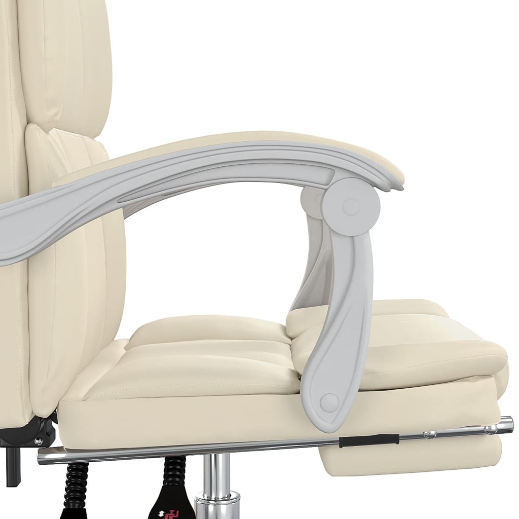 Mit seinem minimalistischen Design vereint dieser trendige Bürostuhl Eleganz und Komfort und ist ein Blickfang in deinem Arbeitsbereich. Langlebiges Kunstleder: Hochwertiges Kunstleder ist ein äußerst langlebiges Material. Es ist schmutzabweisend und lässt sich mit einem feuchten Tuch einfach reinigen. Durch die glatte Oberfläche weist es die Schönheit von Echtleder und einen luxuriösen Look auf.Verstellbare Rückenlehne und Höhe: Der Sessel ist mit Liegefunktion ausgestattet, sodass du Rückenlehne und Fußstütze je nach Belieben einstellen kannst. Verwende den Hebel, um die Sitzhöhe nach Bedarf zu verstellen.Praktisches Design: Der Stuhl lässt sich auch um 360 Grad drehen, um eine größere Bewegungsfreiheit zu ermöglichen. Darüber hinaus lässt sich der Stuhl dank Rollen bequem umher verschieben.Robustes und stabiles Gestell: Die Gestelle aus Metall und Sperrholz sorgen für Robustheit und Stabilität. Hinweis:Jedes Produkt wird mit einer Montageanleitung in der Verpackung für eine einfache Montage geliefert.