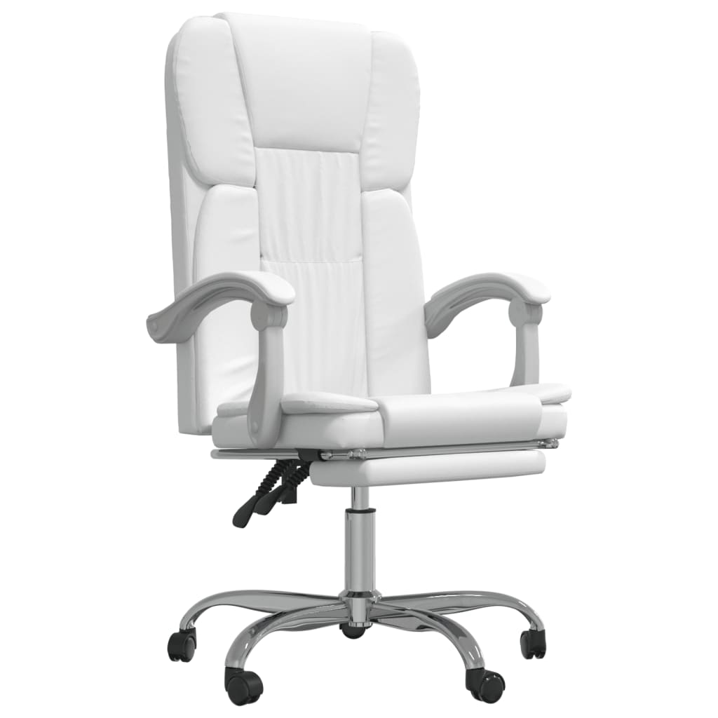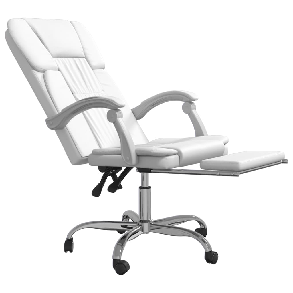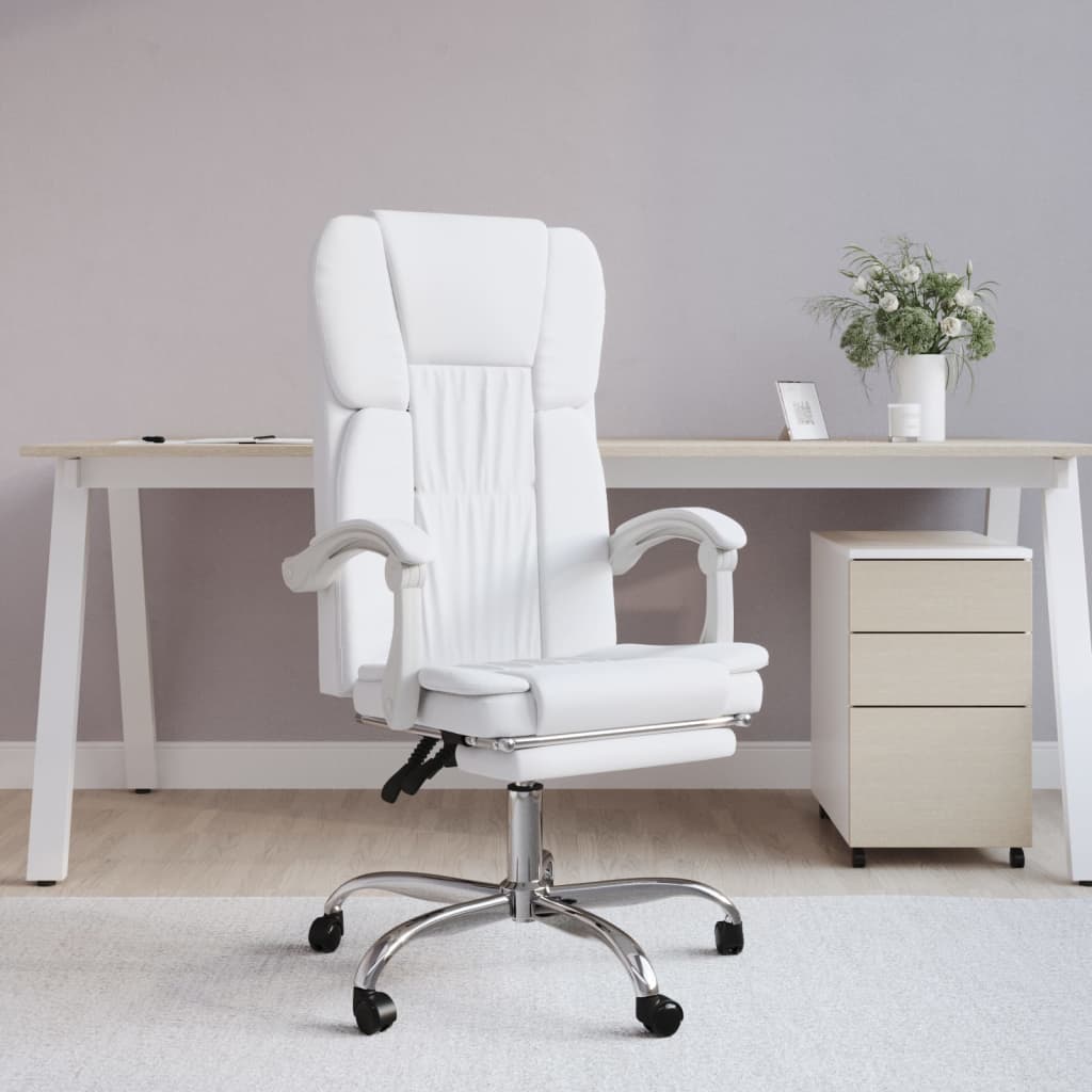 Mit seinem minimalistischen Design vereint dieser trendige Bürostuhl Eleganz und Komfort und ist ein Blickfang in deinem Arbeitsbereich. Langlebiges Kunstleder: Hochwertiges Kunstleder ist ein äußerst langlebiges Material. Es ist schmutzabweisend und lässt sich mit einem feuchten Tuch einfach reinigen. Durch die glatte Oberfläche weist es die Schönheit von Echtleder und einen luxuriösen Look auf.Verstellbare Rückenlehne und Höhe: Der Sessel ist mit Liegefunktion ausgestattet, sodass du Rückenlehne und Fußstütze je nach Belieben einstellen kannst. Verwende den Hebel, um die Sitzhöhe nach Bedarf zu verstellen.Praktisches Design: Der Stuhl lässt sich auch um 360 Grad drehen, um eine größere Bewegungsfreiheit zu ermöglichen. Darüber hinaus lässt sich der Stuhl dank Rollen bequem umher verschieben.Robustes und stabiles Gestell: Die Gestelle aus Metall und Sperrholz sorgen für Robustheit und Stabilität. Hinweis:Jedes Produkt wird mit einer Montageanleitung in der Verpackung für eine einfache Montage geliefert.