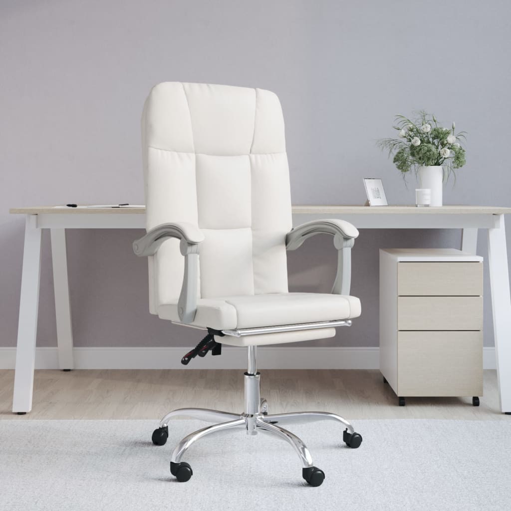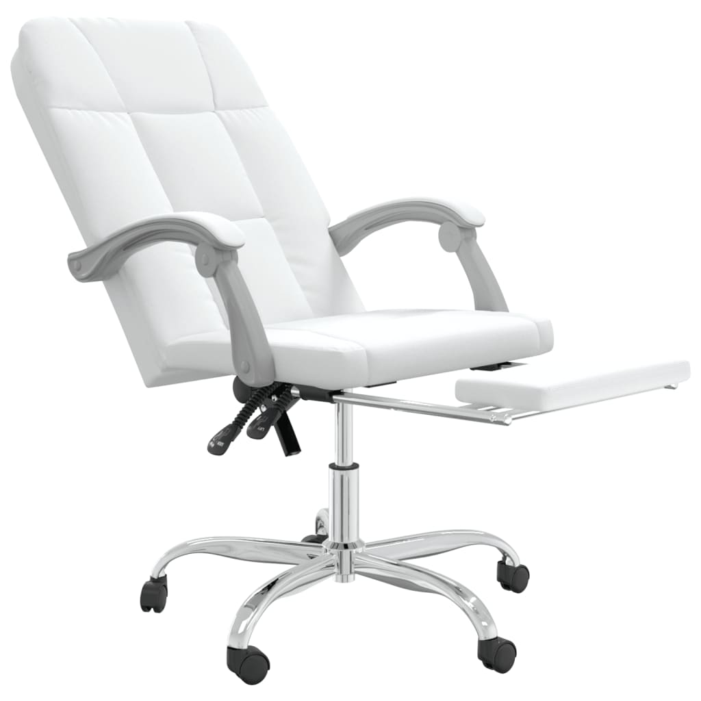 Mit seinem minimalistischen Design vereint dieser trendige Bürostuhl Eleganz und Komfort und ist ein Blickfang in deinem Arbeitsbereich. Langlebiges Kunstleder: Hochwertiges Kunstleder ist ein äußerst langlebiges Material. Es ist schmutzabweisend und lässt sich mit einem feuchten Tuch einfach reinigen. Durch die glatte Oberfläche weist es die Schönheit von Echtleder und einen luxuriösen Look auf.Verstellbare Rückenlehne und Höhe: Der Sessel ist mit Liegefunktion ausgestattet, sodass du Rückenlehne und Fußstütze je nach Belieben einstellen kannst. Verwende den Hebel, um die Sitzhöhe nach Bedarf zu verstellen.Praktisches Design: Der Stuhl lässt sich auch um 360 Grad drehen, um eine größere Bewegungsfreiheit zu ermöglichen. Darüber hinaus lässt sich der Stuhl dank Rollen bequem umher verschieben.Robustes und stabiles Gestell: Die Gestelle aus Metall und Sperrholz sorgen für Robustheit und Stabilität. Hinweis:Jedes Produkt wird mit einer Montageanleitung in der Verpackung für eine einfache Montage geliefert.