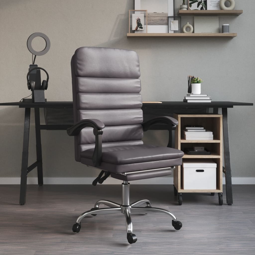 Mit seinem minimalistischen Design vereint dieser trendige Massage-Bürostuhl Eleganz und Komfort und ist ein echter Hingucker in deinem Arbeitsbereich. Langlebiges Kunstleder: Hochwertiges Kunstleder ist ein äußerst langlebiges Material. Es ist schmutzabweisend und lässt sich mit einem feuchten Tuch einfach reinigen. Durch die glatte Oberfläche weist es die Schönheit von Echtleder und einen luxuriösen Look auf.Massagefunktion: Der Massagepunkt am Rücken reduziert effektiv die Ermüdung, um entspannter zu arbeiten.Verstellbare Rückenlehne und Höhe: Der Sessel ist mit Liegefunktion ausgestattet, sodass du Rückenlehne und Fußstütze je nach Belieben einstellen kannst. Verwende den Hebel, um die Sitzhöhe nach Bedarf zu verstellen.Praktisches Design: Der Stuhl lässt sich auch um 360 Grad drehen, um eine größere Bewegungsfreiheit zu ermöglichen. Darüber hinaus lässt sich der Stuhl dank Rollen bequem umher verschieben.Robustes und stabiles Gestell: Die Gestelle aus Metall und Sperrholz sorgen für Robustheit und Stabilität. Gut zu wissen:Jedes Produkt wird mit einer Montageanleitung in der Verpackung für eine einfache Montage geliefert.Das Produkt verfügt über einen USB-Anschluss, aber die zertifizierte 5-V-USB-Stromquelle ist nicht im Lieferumfang enthalten.