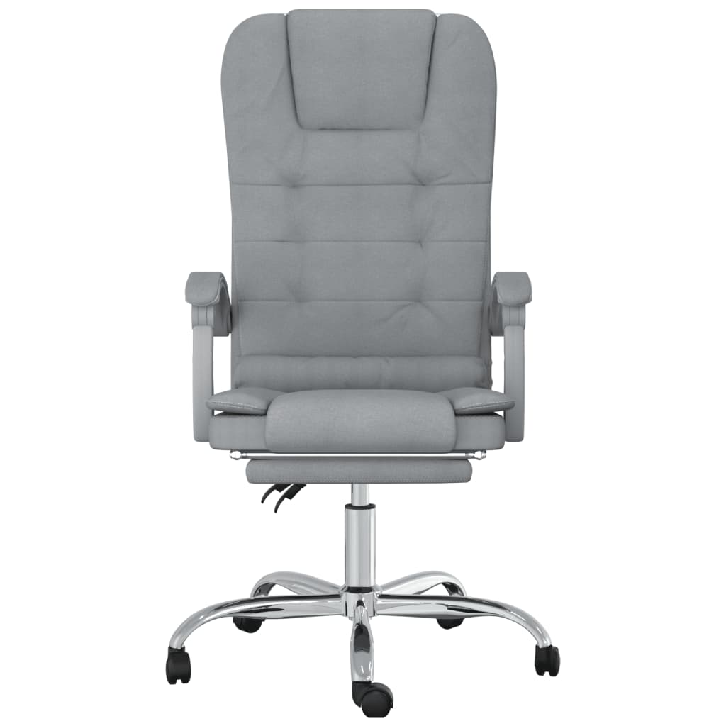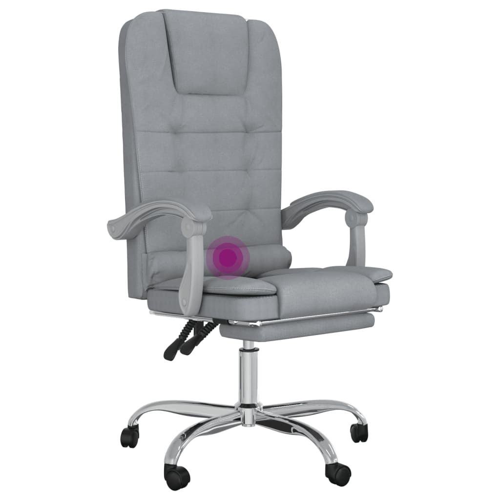 Mit seinem minimalistischen Design vereint dieser trendige Massage-Bürostuhl Eleganz und Komfort und ist ein echter Hingucker in deinem Arbeitsbereich. Strapazierfähiger Stoff: Der Stoff weist eine schlichte und saubere Optik auf und ist außerdem atmungsaktiv und langlebig.Massagefunktion: Der Massagepunkt am Rücken reduziert effektiv die Ermüdung, um entspannter zu arbeiten.Verstellbare Rückenlehne und Höhe: Der Sessel ist mit Liegefunktion ausgestattet, sodass du Rückenlehne und Fußstütze je nach Belieben einstellen kannst. Verwende den Hebel, um die Sitzhöhe nach Bedarf zu verstellen.Praktisches Design: Der Stuhl lässt sich auch um 360 Grad drehen, um eine größere Bewegungsfreiheit zu ermöglichen. Darüber hinaus lässt sich der Stuhl dank Rollen bequem umher verschieben.Robustes und stabiles Gestell: Die Gestelle aus Metall und Sperrholz sorgen für Robustheit und Stabilität. Gut zu wissen:Jedes Produkt wird mit einer Montageanleitung in der Verpackung für eine einfache Montage geliefert.Das Produkt verfügt über einen USB-Anschluss, aber die zertifizierte 5-V-USB-Stromquelle ist nicht im Lieferumfang enthalten.