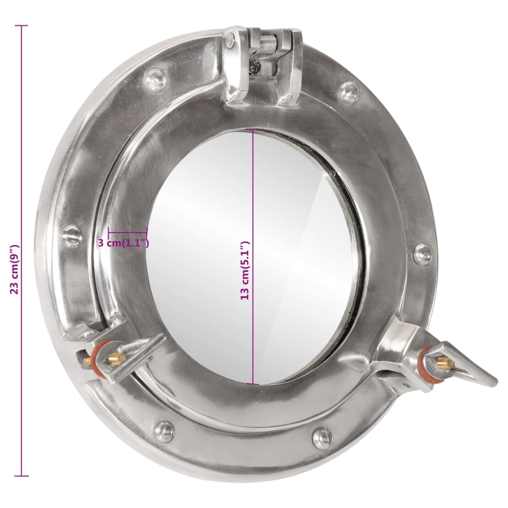 Bringe den Bullaugen-Spiegel an einer Wand in deinem Heimbüro an, um es interessanter zu gestalten und dich von der Küste inspirieren zu lassen. Haltbares Material: Der Bullaugen-Spiegel besitzt eine Aluminiumstruktur, wodurch er robust und langlebig ist.Praktisches Design: Mit seiner flachen und klaren Oberfläche stellt der Spiegel ein praktisches und dekoratives Element in deinem Zuhause dar.Einzigartige Dekoration: Mit seiner polierten Aluminium-Optik ist dieser Bullaugen-Spiegel ein markanter Hingucker in jedem Raum.Breite Anwendung: Der Bullaugen-Spiegel findet den idealen Platz in Wohnungen, Büros, Restaurants, Bars oder jedem anderen Raum, dem du eine nautische Note verleihen möchtest.