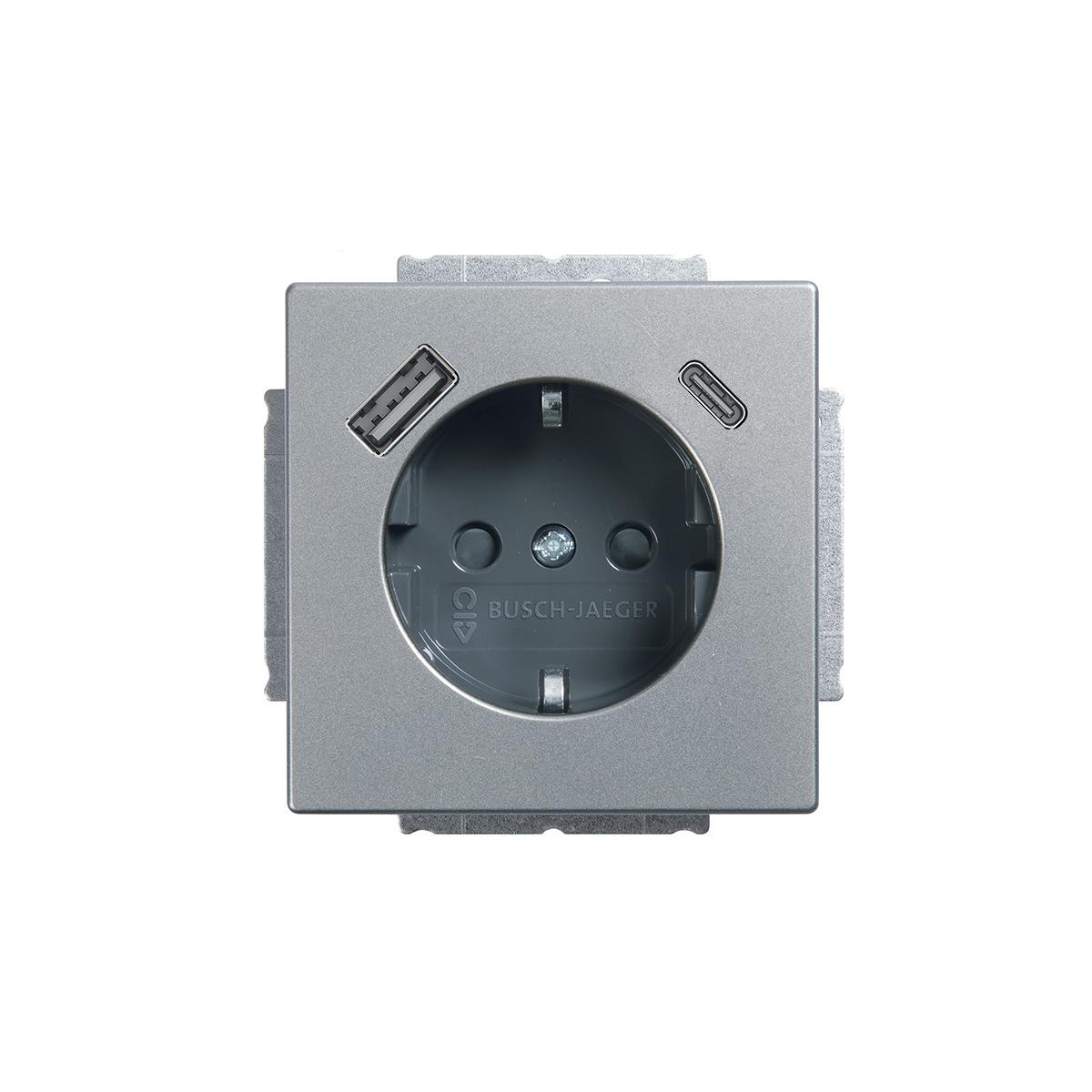 Busch-Jaeger 20 EUCB2USBAC-866 SCHUKO® USB-Steckdose, A/C future® linear, Edelstahl (2CKA002011A6314)