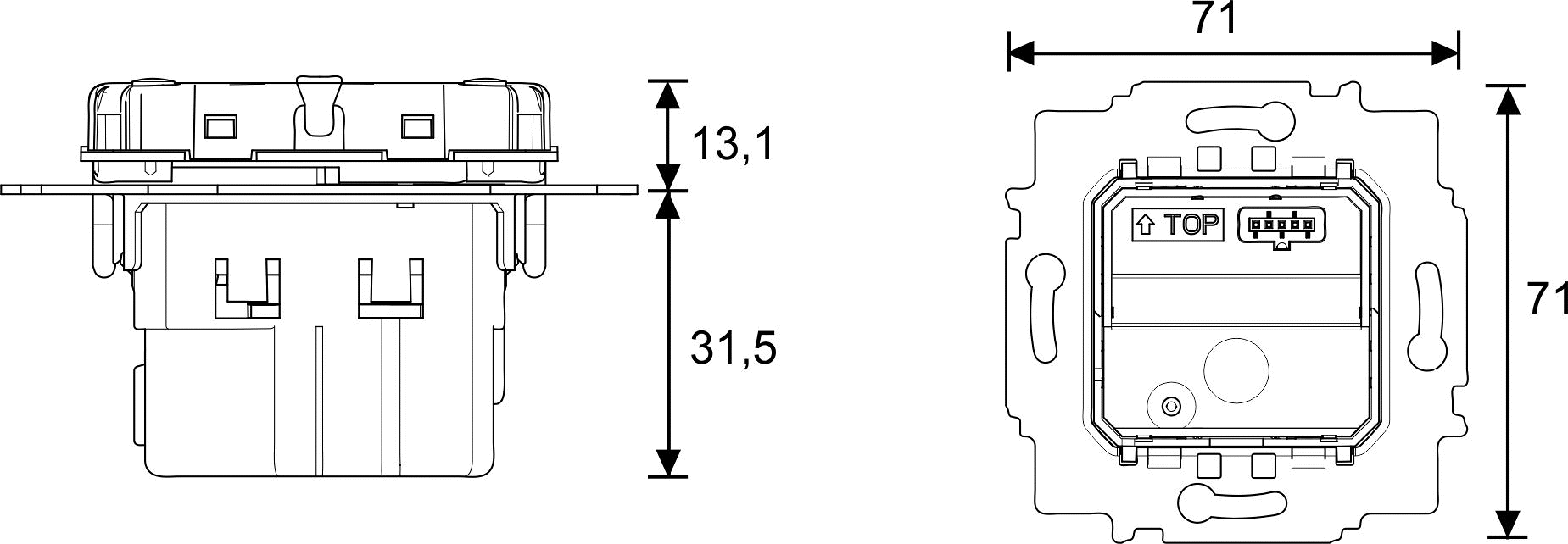 Bei der Installation in die Unterputzdose ist auf eine räumliche Trennung zwischen der Bus- und der 127 V/230 V-Installationsleitung zu achten! Bei Unterschreiten des Mindestabstands z.B. Elektronikdosen oder Isolierschläuche verwenden.