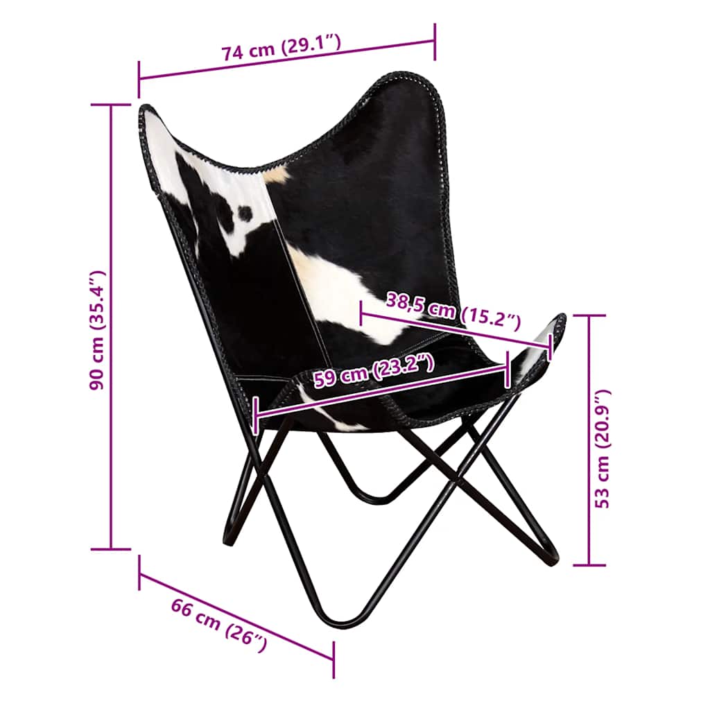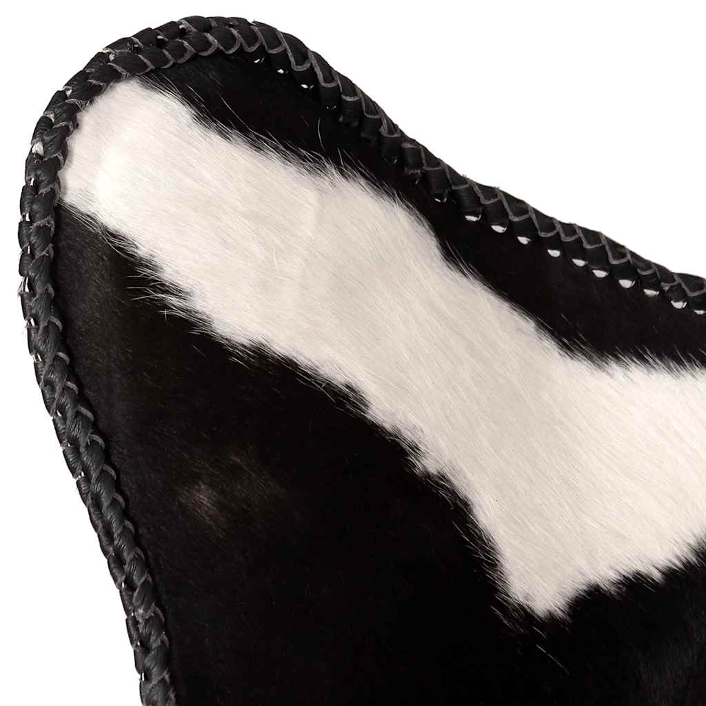 Der Butterfly Chair im Vintage-Stil ist aus echtem Kuhfell gefertigt und ergonomisch gestaltet, damit du dich nach einem anstrengenden Tag voll und ganz entspannen kannst. Sein ikonisches Schmetterling-Design ist sehr beliebt und fügt sich in jede Umgebung ein. Dieser klassische Butterfly-Stuhl aus Leder zeichnet sich durch eine sanft geschwungene Rückenlehne und Sitzfläche aus, die für hohen Sitzkomfort sorgen. Aus echtem Rindsleder gefertigt, ist dieser Retro-Stuhl im Butterfly- Design robust und langlebig. Die vier Ecken des Stuhls sind ebenfalls mit echtem Kuhfell versehen. Das robuste, pulverbeschichtete Eisengestell trägt zur Stabilität und Langlebigkeit des Sessels bei. Der Stuhl ist leicht und bequem. Wichtiger Hinweis: Die Farben und Markierungen des Kuhfells sind von Stück zu Stück unterschiedlich, sodass jedes Möbelstück ein Unikat ist; die Lieferung erfolgt nach dem Zufallsprinzip.