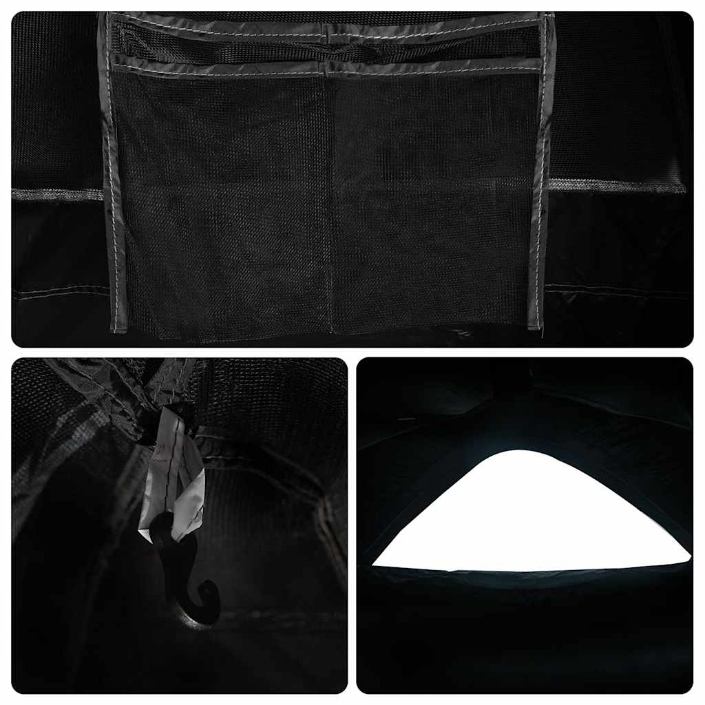 Dieses Campingzelt im modernen Look schützt vor unangenehmen Wetter und bietet einen komfortablen Ort bei Abenteuern. Rundum wasserdichtes Design: Aus Polyester mit PU-Beschichtung gefertigt, ist dieses Campingzelt wasser- und winddicht. Die versiegelten Nähte verhindern effektiv das Eindringen von Regenwasser, während die strapazierfähige Bodenplane für ein trockenes und komfortables Interieur sorgt.Weißer Verdunkelungsstoff: Die speziell entworfene Zeltplane hält 99 % des Tageslichtes ab und sorgt so für eine kühlere und bequemere Schlafumgebung. Verabschiede dich also von der Morgensonne und genieße einen erholsamen Schlaf.Abnehmbares Überzelt: Das abnehmbare Überzelt lässt sich an der Zeltoberseite befestigen, um Wetterschutz zu bieten und Privatsphäre zu schaffen.Einfacher Auf- und Abbau: Die hochflexiblen und leichten Glasfaserstangen und das praktische Steckverbindungssystem machen den Auf- und Abbau des Zeltes zum Kinderspiel.Zusätzlicher Stauraum: In der Aufbewahrungstasche kannst du Mobiltelefon, Schlüssel oder verschiedene Kleinigkeiten ordentlich und griffbereit aufbewahren.Leicht und tragbar: Dank des faltbaren und leichten Designs lässt sich das Zelt einfach verpacken und in der mitgelieferten Tragetasche mühelos verstauen und transportieren. Achtung:Halte alle Flammen und Wärmequellen von diesem Zeltstoff fern.