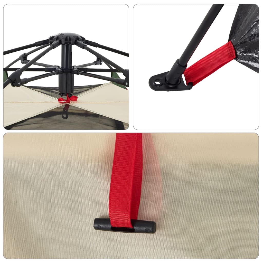 Dieses Campingzelt im modernen Look schützt vor unangenehmen Wetter und bietet einen komfortablen Ort bei Abenteuern. Rundum wasserdichtes Design: Aus Polyester mit PU-Beschichtung gefertigt, ist dieses Campingzelt wasser- und winddicht. Die versiegelten Nähte verhindern effektiv das Eindringen von Regenwasser, während die strapazierfähige Bodenplane für ein trockenes und komfortables Interieur sorgt.Quick-Release-System: Dank des Quick-Release-Systems lässt sich das Zelt mühelos aufbauen! Lege das Zelt auf den Boden, ziehe das vormontierte Gestänge heraus, bis es einrastet, und schon ist das Zelt einsatzbereit!Lange Stangen für Sonnendach: Dieses Zelt wird samt langen Stangen geliefert, die zum Stützen der Eingangstür verwenden werden können, um ein Sonnendach zu bilden. So kannst du die freie Natur im Schatten genießen!Praktischer Zugang zum Stromkabel: Dank des E-Anschlusses kannst du ganz einfach ein Verlängerungskabel von einer externen Stromquelle an dein Zelt anschließen.Leicht und tragbar: Dank des faltbaren und leichten Designs lässt sich das Zelt einfach verpacken und in der mitgelieferten Tragetasche mühelos verstauen und transportieren. Achtung:Halte alle Flammen und Wärmequellen von diesem Zeltstoff fern.