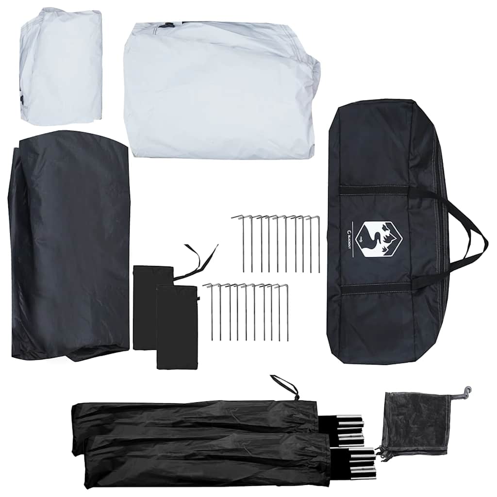 Dieses Campingzelt im modernen Look schützt vor unangenehmen Wetter und bietet einen komfortablen Ort bei Abenteuern. Rundum wasserdichtes Design: Aus Polyester mit PU-Beschichtung gefertigt, ist dieses Campingzelt wasser- und winddicht. Die versiegelten Nähte verhindern effektiv das Eindringen von Regenwasser, während die strapazierfähige Bodenplane für ein trockenes und komfortables Interieur sorgt.Weißer Verdunkelungsstoff: Die speziell entworfene Zeltplane hält 99 % des Tageslichtes ab und sorgt so für eine kühlere und bequemere Schlafumgebung. Verabschiede dich also von der Morgensonne und genieße einen erholsamen Schlaf.Einfacher Auf- und Abbau: Die hochflexiblen und leichten Glasfaserstangen und das praktische Steckverbindungssystem machen den Auf- und Abbau des Zeltes zum Kinderspiel.Abnehmbares Überzelt: Das abnehmbare Überzelt lässt sich an der Zeltoberseite befestigen, um Wetterschutz zu bieten und Privatsphäre zu schaffen.Praktischer Zugang zum Stromkabel: Dank des E-Anschlusses kannst du ganz einfach ein Verlängerungskabel von einer externen Stromquelle an dein Zelt anschließen.Leicht und tragbar: Dank des faltbaren und leichten Designs lässt sich das Zelt einfach verpacken und in der mitgelieferten Tragetasche mühelos verstauen und transportieren. Achtung:Halte alle Flammen und Wärmequellen von diesem Zeltstoff fern.