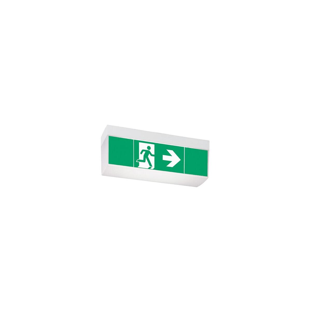 Rettungszeichen-Leuchte mit dreiseitigem Lichtaustritt gem. DIN EN 60598-1, DIN EN 60598-2-22, DIN 4844-1 und DIN EN 1838 für Deckenmontage. Modular aufgebaute Leuchte bestehend aus: Leuchtengehäuse aus 850°C glühdrahtbeständigem, halogenfreiem Polycarbonat zur werkzeuglosen Montage auf dem Schnellmontagesatz. Ausleuchtung gem. DIN 4844-1: mittlere Leuchtdichte der weißen Kontrastfarbe Lm >= 500 cd/m². Hohe Lebensdauer > 50000 h durch optimierte LED-Betriebsbedingungen. Spezieller LED-Konverter mit integriertem Überwachungsbaustein für Einzelleuchtenüberwachung mit 20-stelligen Adressschaltern. Mischbetrieb der Schaltungsarten (Bereitschaftslicht, Dauerlicht oder geschaltetes Dauerlicht) innerhalb eines Stromkreises ohne zusätzliche Daten- oder Schaltleitung zu den Leuchten in Verbindung mit geeigneten Gruppen- oder Zentralbatterieanlagen mit STAR-Technik möglich.