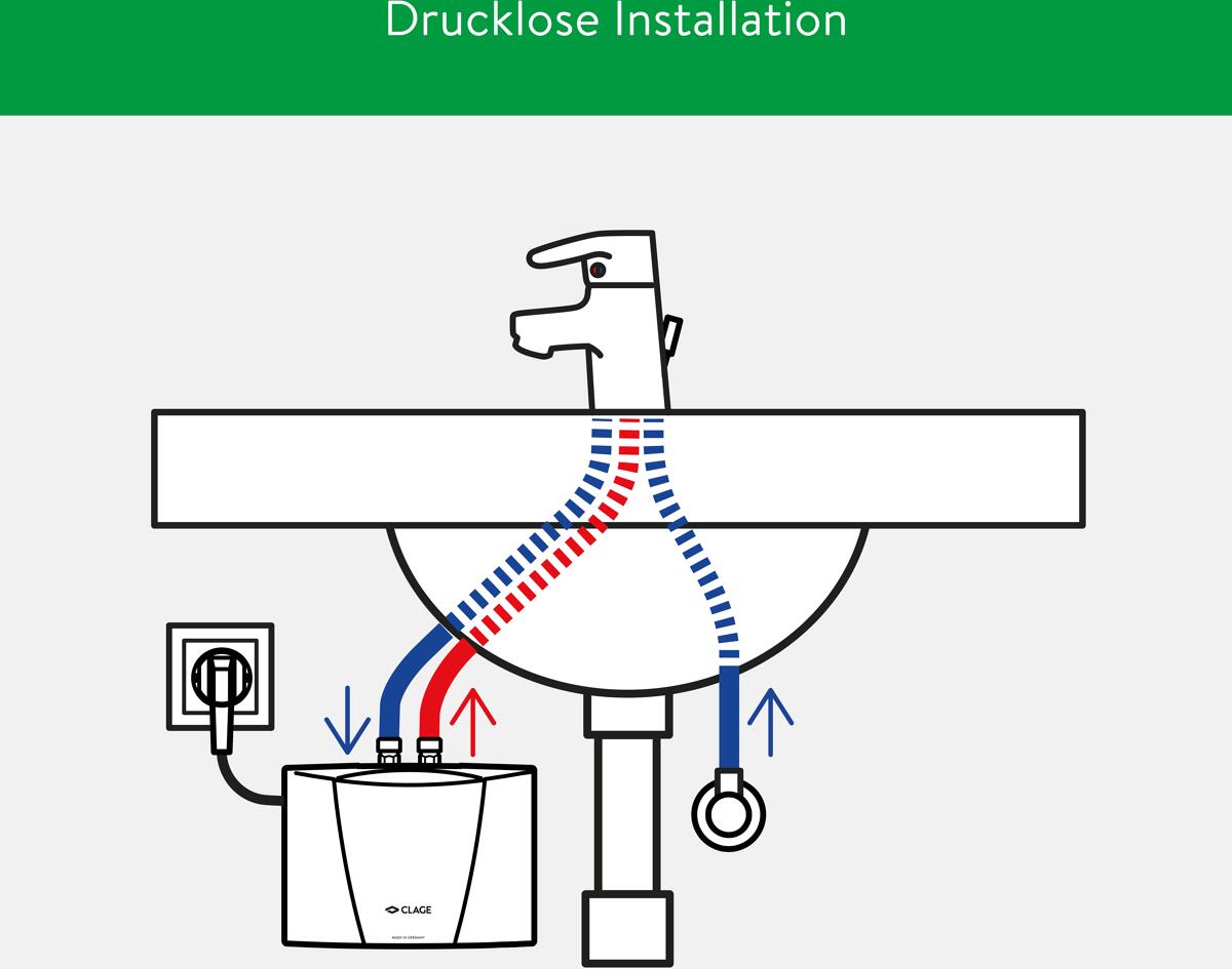 Der hydraulisch gesteuerte Kleindurchlauferhitzer M3/END von Clage wird als Komplett-Set mit druckloser Einhebel-Mischbatterie zur Untertischinstallation geliefert. Das Gerät wird in Deutschland hergestellt (""Made in Germany"") und überzeugt durch hohe Verarbeitungsqualität.