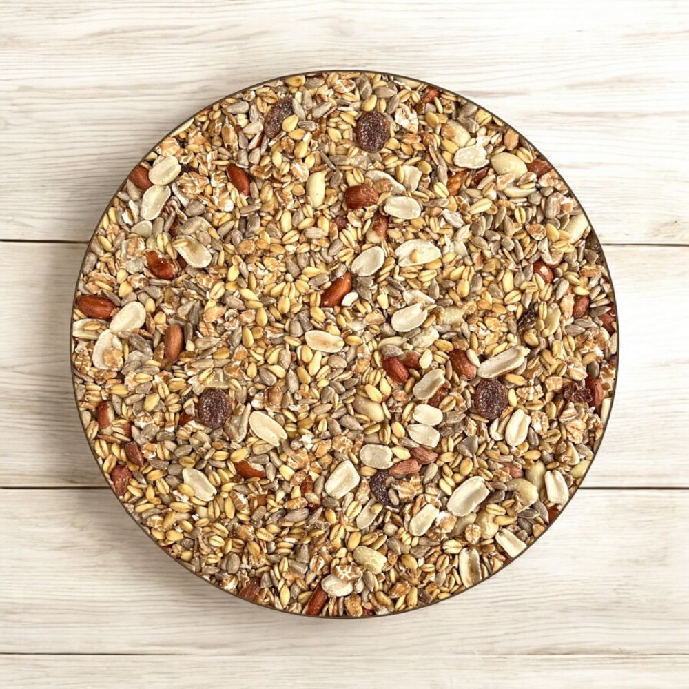 BESTE ROHSTOFFE - Wir verarbeiten nur beste deutsche Rohstoffe in unserer Familieneigenen Produktion "Made in Germany". Vogelfutter für alle Körner- und Weichfutterfresser wie z.B. Buchfinken, Drosseln, Meisen usw.SICHTBARE ZUTATEN - Sie sehen in unserem Futter alle Zutaten und wir verarbeiten absolut keine billigen Füllstoffe. Ganzjahres Futter mit Nüssen und geschälten SonnenblumenkernenGANZJAHRESFÜTTERUNG - Durch die vielfältige Kernmischung ist eine Ergänzungsfütterung zur durchgängig Fütterung über das ganze Jahr für viele Wildvogelarten möglichPREMIUM TERRASSENMIX - Unser Terrassenmix wird extrem gerne von nahezu allen Wildvögeln gefressen und hinterlässt auf Terrasse und Balkon keinerlei SchalenrückständeCLASSIC BIRD Vogelfutter Terrassenmix 10 kg, Vogelfutter Erdnusskerne für Wildvögel, Vogelfutter Sonnenblumenkerne geschält, Vogelfutter schalenlos, Gartenvögel, ganzjahres Vogelfutter, FettfutterEine hochwertige und energiereiche Mischung ohne Schalen bietet Classic Bird Terassenmix, schalenlos. Dieses leckere Futter können Sie bei Bedarf das ganze Jahr über verfüttern. Zudem hinterlässt es keine Schalenrückstände und eignet sich somit hervorragend für Balkon oder Terrasse.- Ganzjahresfutter- hochwertige Mischung- keine Schalenrückstände- Ergänzungsfuttermittel- vielfältige KernmischungKühl und trocken lagern!Zusammensetzung:Ganze Erdnüsse, Getreide 30 & 12,5, Sonnenblumenkerne geschält, Sonnenblumenöl kaltgepresst, Rosinen.Inverkehrbringer: BTG Beteiligungs GmbH, Gewerbestr. 5 - 7, 42499 Hückeswagen, Tel.: 02192/9357642, E-Mail: info@btg-systemlogistik.de