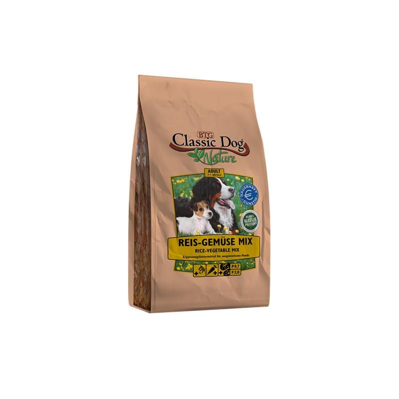 Dieses Ergänzungsfuttermittel ist ein reines Naturprodukt ohne Farb-, Konservierungs-und AromastoffeEs ist eine hervorragende Futtergrundlage und eine altbewährte Alternativezu glutenbasierten Fütterungsproblemen, sowie eine optimale Ergänzung zur Dosennahrung oder Frischfleischfütterung. Das Produkt wird aus hochwertigen, ausgesuchten und chonend aufbereiteten Rohstoffen hergestellt.Zusammensetzung:Reis, Gemüse (Möhren, Lauch).Analytische Bestandteile:Rohprotein 8,7 %, Rohfett 2,0 %, Rohasche 5,5 %, Rohfaser 1,9 %.Fütterungsempfehlung:TagesbedarfDer angesetzte Reis-Gemüse Mix Mischungsanteil kann aus bis zu 50 % der Gesamtfutter-Portion bestehen.FütterungshinweisDen Reis-Gemüse Mix mindestens 10 Minuten vor der Fütterung mit Wasser, Fleischsaft oder Brühe anrühren, dann mit Frisch- oder Dosenfleisch vermischen, umrühren, fertig. Bitte immer frisches Trinkwasser in ausreichender Menge in einem getrennten Gefäß zur Verfügung stellen.Inverkehrbringer: BTG Beteiligungs GmbH, Gewerbestr. 5 - 7, 42499 Hückeswagen, Tel.: 02192/9357642, E-Mail: info@btg-systemlogistik.de
