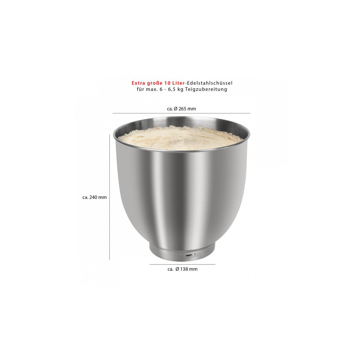 - Extra große 10 Liter-Edelstahlschüssel für max. 6?6,5 kg Teigzubereitung