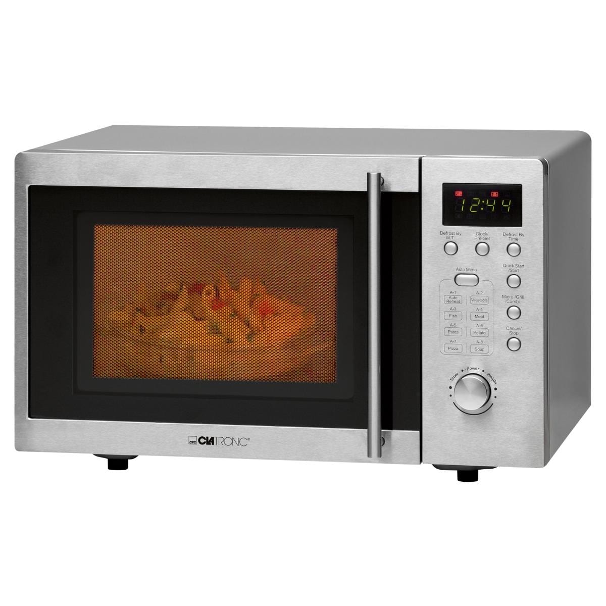 Clatronic MWG 778 U Unterbau Mikrowelle mit Grill, 800 W, 46 cm breit, 20 L, 1000W Grill, Edelstahl (253130)