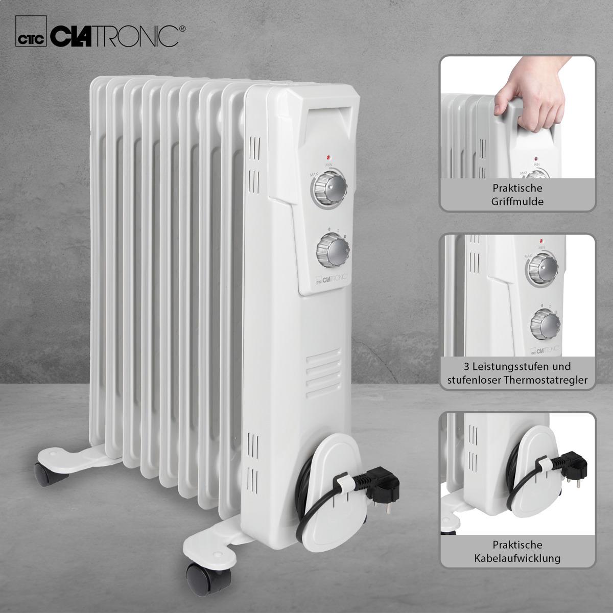 - Mobile Wärme für Zuhause ? Übergangs- oder Zusatzbeheizung leicht gemacht mit Clatronic und dem 9 Rippen-Ölradiator. Neben dem Wohnzimmer oder der Küche, können Sie die Heizung auch in Gartenhäusern, Garagen oder Wintergärten nutzen.