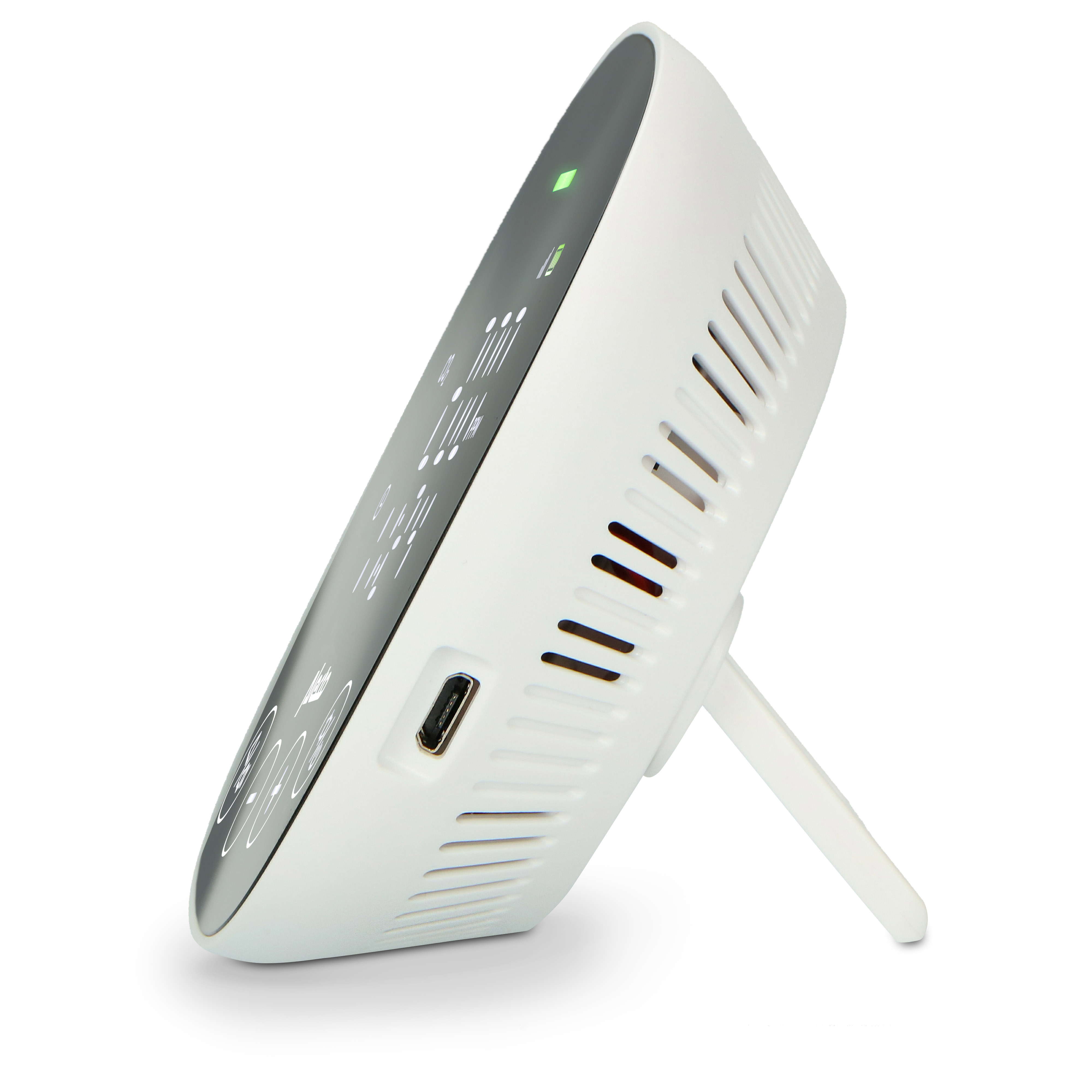 Zusätzlich zum NDIR-Sensor des professionellen CO2-Messgeräts werden die relative Luftfeuchtigkeit (RH) und die Temperatur gemessen. So haben Sie das Raumklima stets im Blick und wissen, wann Sie lüften müssen.