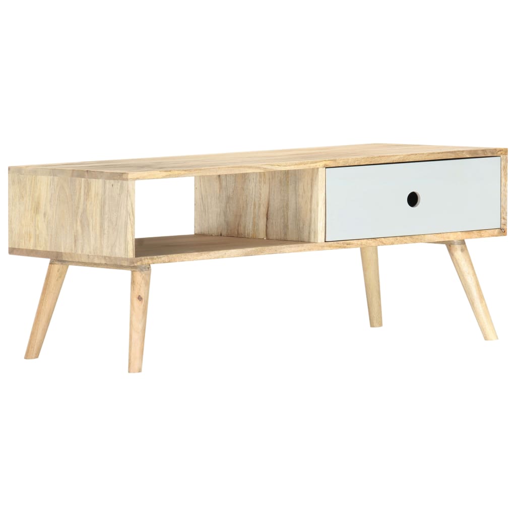 Dieser Couchtisch aus lackiertem Mangoholz stellt sowohl eine dekorative als auch eine praktische Bereicherung für jede Einrichtung dar. Außerdem kann er auch als Beistelltisch sowie Ablagetisch verwendet werden. Der Couchtisch ist in Handarbeit aus massivem Mangoholz gefertigt, das solide, stabil und schön ist, und die Handwerkskunst trägt zu seinem spektakulären Retrostil bei. Jeder Schritt des Fertigungsprozesses wird mit größter Sorgfalt durchgeführt, sei es beim Polieren oder Lackieren. Die Handwerkskunst und die schöne Holzmaserung machen jedes Möbelstück zu einem Unikat. Ausgestattet mit 1 Schublade und 1 Regal, bietet Ihnen dieser Tisch geräumigen Stauraum, um Ihre wichtigen Sachen ordentlich und griffbereit aufzubewahren. Dieser Couchtisch ist einfach zu montieren. Wichtiger Hinweis: Farben und Maserung variieren von Stück zu Stück, jedes Möbelstück ist ein Unikat. Die Lieferung erfolgt in zufälliger Reihenfolge.