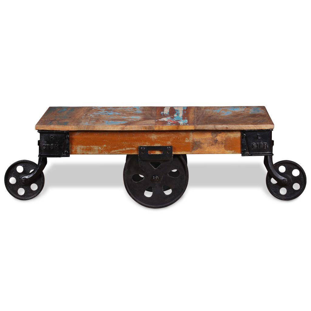 Dieser Couchtisch aus Holz im industriellen Stil versprüht Vintage-Charme und ist eine zeitlose Ergänzung für dein Zuhause. Der Tisch kann auch als Beistelltisch oder Wohnzimmertisch verwendet werden. Der Couchtisch im Retro-Stil besteht aus Altholz, das stabil, haltbar und optisch ansprechend ist. Es weist die Eigenschaften verschiedener Holzarten wie Teak-, Mango-, Akazien-, Hartholz usw. auf. Jeder Schritt des Fertigungsprozesses wird mit größter Sorgfalt ausgeführt, sei es Polieren, Anstreichen oder Lackieren. Die Handwerkskunst und die schöne Holzmaserung machen jedes Möbelstück zu einem Unikat. Der Tisch ist mit 4 Eisenrädern ausgestattet, die das Umstellen erleichtern und seinen industriellen Look vervollständigen. Wichtiger Hinweis: Die Farben variieren von Stück zu Stück, so dass jeder unserer Tische einzigartig ist. Die Lieferung erfolgt in zufälliger Reihenfolge.