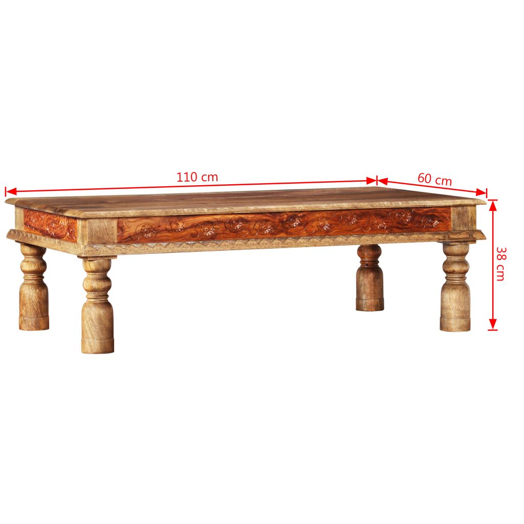 Dieser Couchtisch aus Holz weist ein ansprechendes Design im Antik-Stil auf und bringt einen Hauch von kolonialem Stil in dein Interieur. Aus massivem Mango- und Massivholz Akazie gefertigt, ist der Tisch stabil, haltbar und pflegeleicht. Akazie ist ein tropisches Hartholz, das für seine reiche Maserung geschätzt wird und auch als Rosenholz bekannt ist. Die Tischplatte bietet den idealen Platz für Dekoartikel wie Obstkörbe, Vasen oder Topfpflanzen. Die eingravierten Blumenmuster tragen zum Antik-Stil des Tisches bei. Jeder Schritt des Fertigungsprozesses wird mit größter Sorgfalt ausgeführt, sei es Polieren, Anstreichen oder Lackieren. Der Zusammenbau ist leicht. Wichtiger Hinweis: Die Farbe und die Holzmaserung können von Artikel zu Artikel variieren, wodurch jedes Möbelstück einzigartig ist. Die Lieferung erfolgt in zufälliger Reihenfolge, was die Exklusivität und Individualität deines Produkts gewährleistet.
