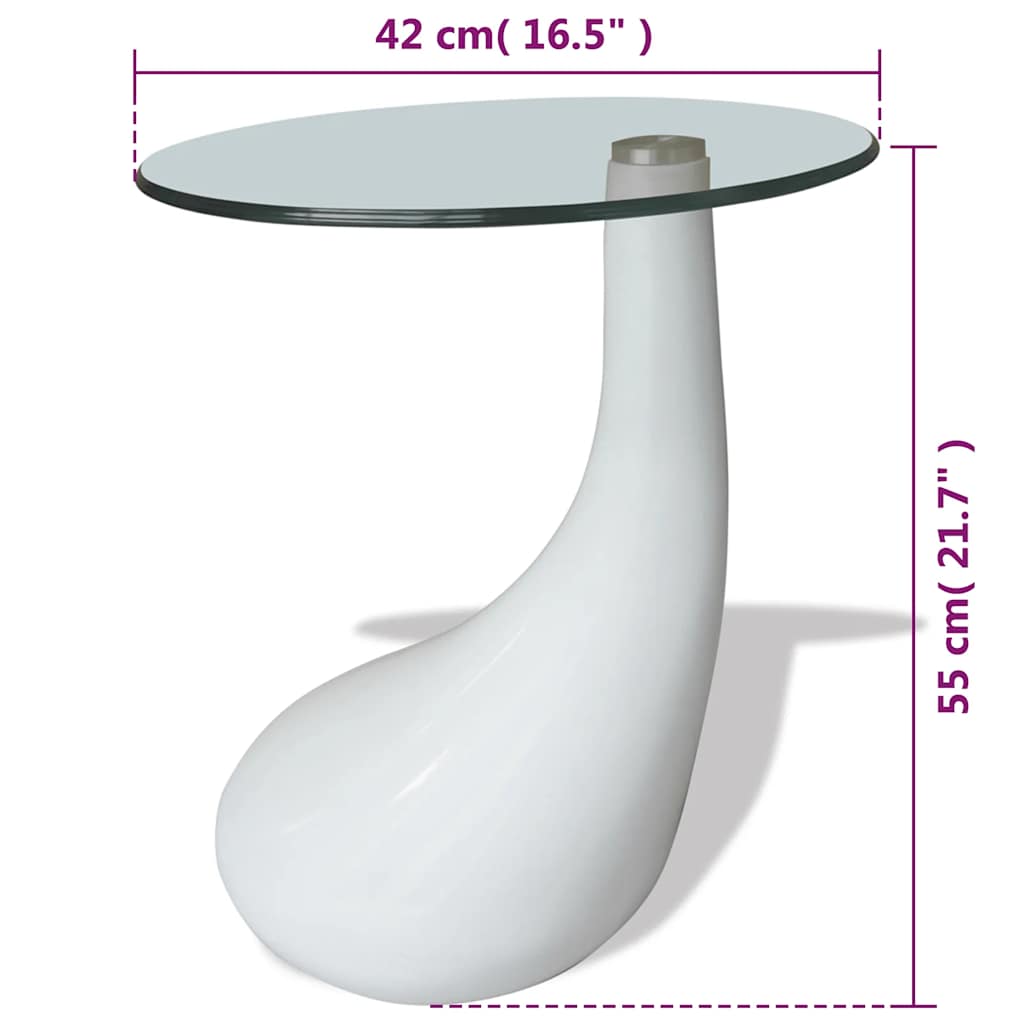 Dieser kleine Couchtisch überzeugt durch sein herrliches Design, das die vorhandene Wohneinrichtung wunderbar ergänzen und aufwerten wird. Der einzigartige Sockel in Tropfenform in Hochglanz-Weiß verleiht dem Tisch einen schicken Look. Der Tisch macht eine gute Figur neben dem Sofa im Wohnzimmer, kann aber auch als Beistelltisch dienen, um Getränke oder verschiedene wichtige Sache griffbereit zu halten. Zu deiner Sicherheit ist die Tischplatte aus Hartglas gefertigt.