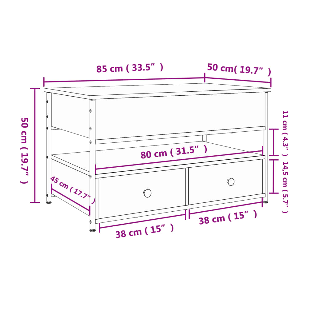 Bringe einen Hauch Eleganz in dein Wohnzimmer mit diesem stilvollen Couchtisch. Langlebiges Material: Der Holzwerkstoff ist von außergewöhnlicher Qualität mit glatter Oberfläche und zeichnet sich außerdem durch Festigkeit, Stabilität und Widerstandsfähigkeit gegen Feuchtigkeit aus.Höhenverstellbar: Die Tischplatte dieses Couchtisches lässt sich problemlos auf eine bequeme Höhe anheben, sodass sich der Tisch auch zum Arbeiten oder Speisen verwenden lässt.Reichlich Stauraum: Der Wohnzimmertisch verfügt über 2 Schubladen und ein verstecktes Fach unter der Tischplatte, die reichlich Platz bieten, um häufig benutzte Gegenstände staubfrei aufzubewahren.Verstellbare Füße: Der Beistelltisch ist mit 4 verstellbaren Füßen ausgestattet, die deinen Boden vor Kratzern schützen und für eine stabile Position auf unebenem Untergrund sorgen.Stabiles Gestell: Das Metallgestell verleiht dem Couchtisch Robustheit und Stabilität.