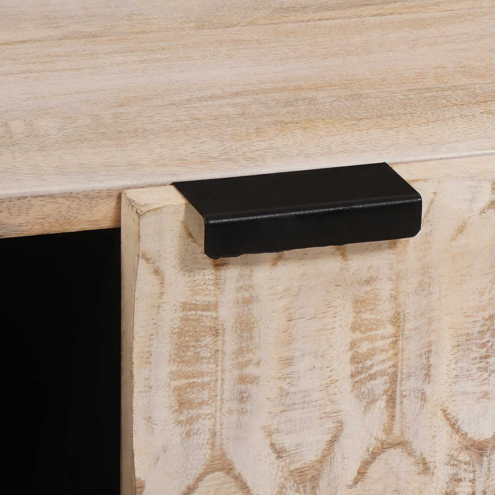 Dieser Holz-Couchtisch ist ein echtes Highlight, das die ganze Ästhetik deines Wohnzimmers aufwertet. Seine klassische rechteckige Form ist perfekt, um Getränke, Bücher und Deko-Gegenstände zu halten, während das elegante Schwarz einen tollen Akzent setzt. Ideal für alle, die einen aufgeräumten Raum mögen, bietet er viel Stauraum unter der Tischplatte, perfekt für Zeitschriften oder Fernbedienungen. Sein robustes Design macht ihn für den täglichen Gebrauch geeignet und bereichert dein Wohnerlebnis. Massivholz-Mangokonstruktion Dieser Tisch besteht komplett aus massivem Mangoholz, er bietet eine einzigartige natürliche Schönheit und Langlebigkeit. Die schönen Maserungen und Farbvariationen des Holzes geben jedem Stück Charakter und machen deinen Couchtisch so besonders wie dein Zuhause. Stauraum mit Scharnier-Tür Der Couchtisch hat praktische Scharniertüren, die den Zugang zum großzügigen Stauraum erleichtern. Ideal zum Verstauen von Büchern und Deko, sorgt das für einen aufgeräumten Look, während alles Wichtige immer griffbereit ist. Rechteckige Form Mit seiner klassischen Rechteckform bereichert dieser Tisch das Wohnzimmer durch klare Linien und ausgewogene Proportionen. Er passt zu verschiedenen Wohnstilen, ob modern oder traditionell. Diese Form erleichtert das Bewegen und Platzieren, sodass du ihn gut anpassen kannst. Funktionalität im Fokus Dieser Tisch wird zum Herzstück deines Wohnzimmers und bietet Stil und Praktikabilität. Die große Oberfläche bietet ausreichend Platz für Unterhaltung oder zum Entspannen. Die Mischung aus verschiedenen Oberflächen sorgt für modernen Charme und macht ihn zu einem echten Blickfang. Nur für den Innenbereich Dieser Couchtisch ist speziell für drinnen designt und bereichert jede Wohnumgebung. Seine schützende Oberfläche hält alltäglichem Verschleiß stand und bleibt glänzend. So ist der Tisch ein langlebiges und einladendes Element deiner Wohnkultur.