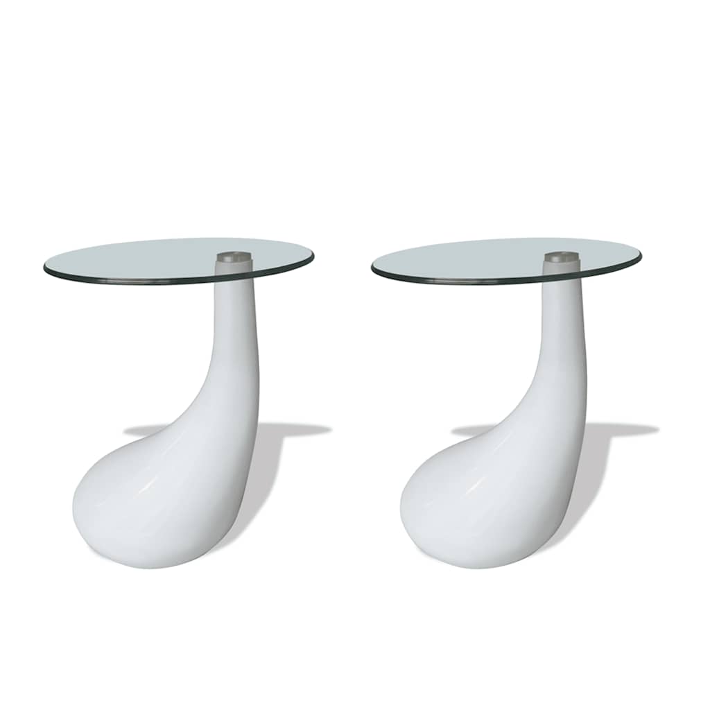 Diese Couchtische/Beistelltische überzeugen durch ihr herrliches Design, das deine Inneneinrichtung sofort aufwertet. Der einzigartige Sockel in Tropfenform in Hochglanz-Weiß verleiht dem Tisch einen schicken Look. Der Tisch macht eine gute Figur neben dem Sofa im Wohnzimmer, kann aber auch als Beistelltisch dienen, um Getränke oder verschiedene wichtige Sache griffbereit zu halten. Zu deiner Sicherheit ist die Tischplatte aus Hartglas gefertigt. Im Lieferumfang sind 2 Couchtische enthalten.