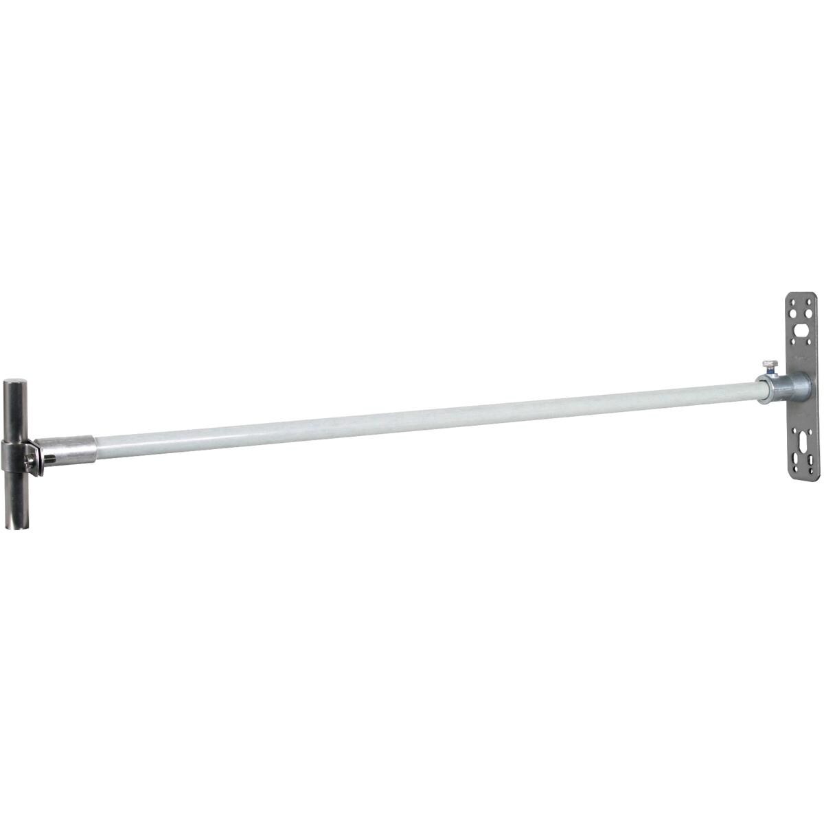 Distanzhalter für Fangstangen zur Einhaltung des Trennungsabstandes nach DIN EN 62305-3 (VDE 0185-305-3). Distanzstab aus glasfaserverstärktem Kunststoff (GFK) D16 mm, UV-stabilisiert, Farbe lichtgrau, Materialfaktor km= 0,7. Ausführung mit Stangenhalter (feste Leitungsführung) und Befestigungsplatte.