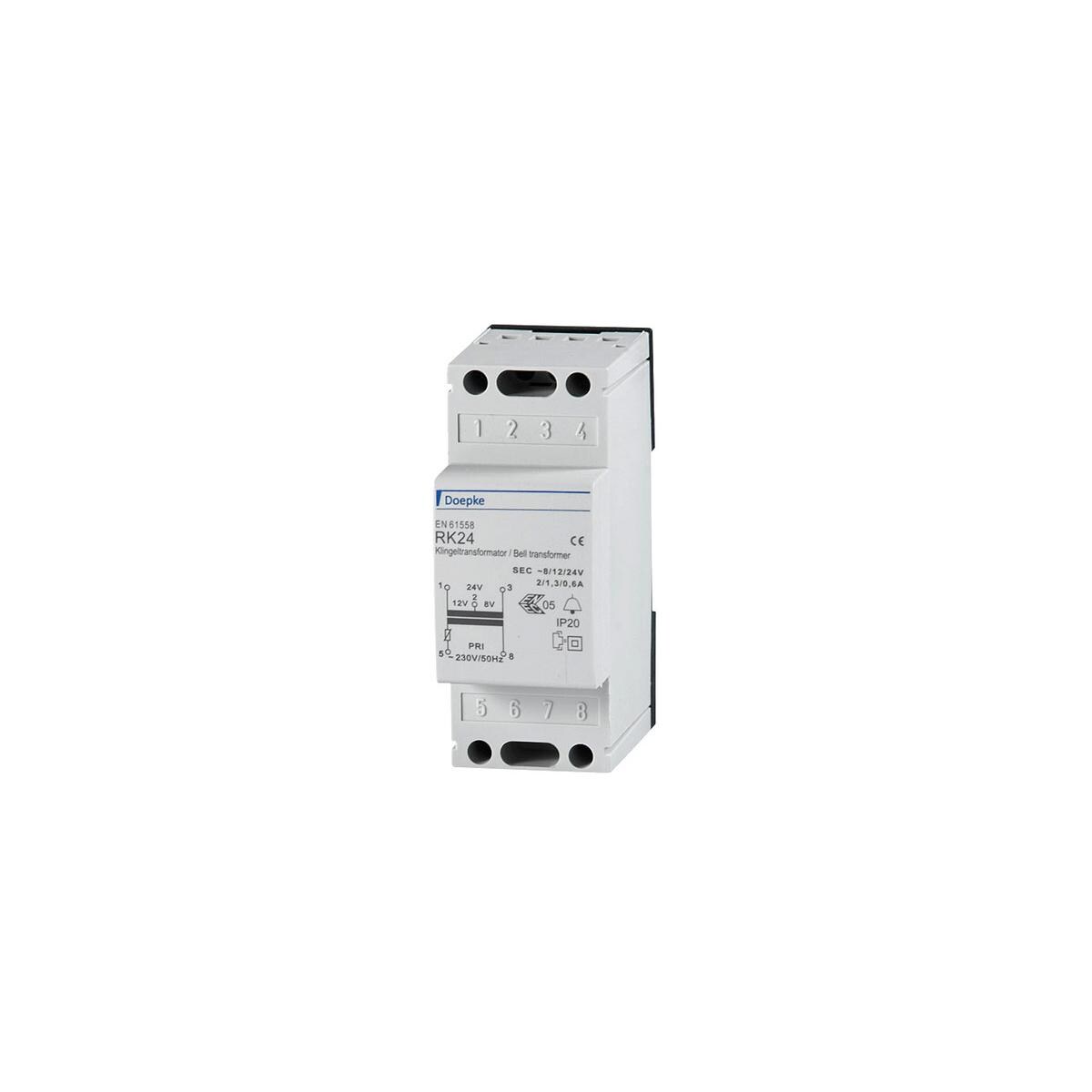 Systemübergreifende Komponenten eignen sich sowohl für das SI-Stromstoßsystem als auch für das Dupline-Bussystem. Kompatible Ausgangssignale (z. B. 24 V DC oder potenzialfreie Relais) erlauben es zudem, diese Komponenten auch für andere Automatisierungssysteme zu nutzen. Im Übrigen arbeiten diese Geräte vollkommen autark. Klingeltransformatoren erzeugen die Ausgangsspannung für Türsignalanlagen wie Klingeln, Summer oder Gongs. Diese kurzschlussfesten, geprüften und zertifizierten Transformatoren wandeln die Netzspannung 230 V in Schutzkleinspannung um. Eigenschaften: kurzschlussfest durch PTC; geprüft nach EN 61558; zertifiziert durch VDE und KEMA, gekennzeichnet mit ENEC-Zeichen für den Einsatz in ganz Europa; Montageart: Schnellbefestigung auf Tragschiene; Einbaulage beliebig; Einsatzgebiete: Klingeltransformatoren der Baureihe RK werden zur AC-Spannungsversorgung von z. B. Klingelanlagen. Schließanlagen und Relaisschaltungen eingesetzt; Hinweise: Nach einem Kurzschluss ist die Wiederinbetriebnahme durch kurzzeitige Trennung der Primärseite vorzunehmen; Bei geringer Belastung oder Leerlauf kann sich die Ausgangsspannung erhöhen; nur für kurzzeitige Belastung; Bei Dauerbelastung empfehlen wir den Einsatz von Sicherheitstransformatoren.