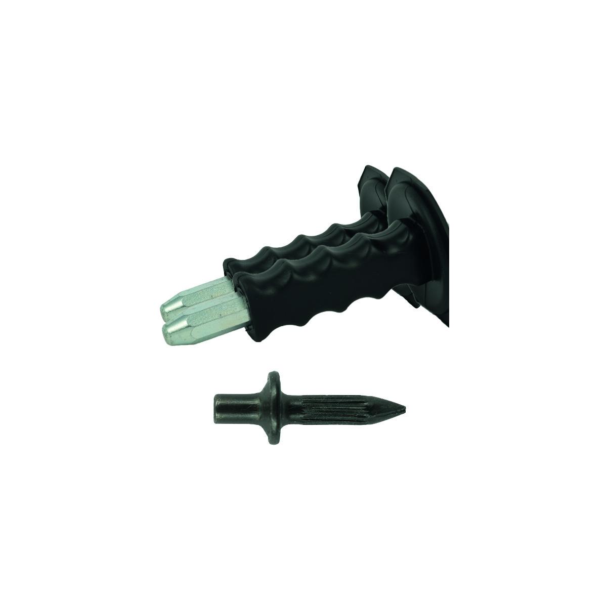 - Das FixPin Setzeisen ist gefertigt aus einem hochwertigen Werkzeugstahl und gehärtet nach DIN 7255 Sicherheitsnorm entsprechend der Vorschrift der Berufsgenossenschaft
