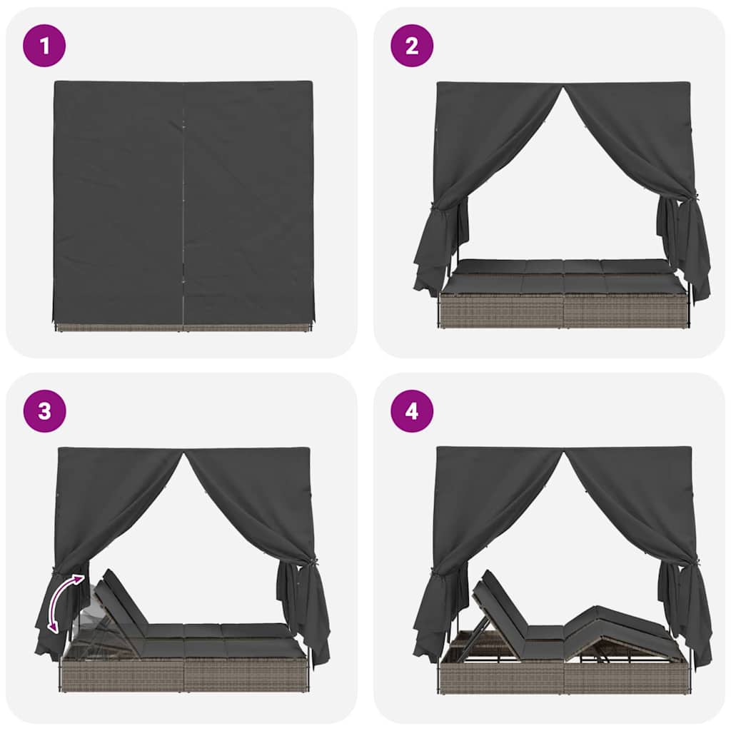 Das Outdoor-Tagesbett mit verstellbarem Sonnenschutz ist perfekt, um deine chilligen Auenbereiche, wie Grten oder Terrassen, aufzuwerten. Es verbindet Stil und Funktionalitt und eignet sich super fr faule Sommernachmittage oder Gartenpartys. Das Bett bietet Platz fr bis zu zwei Personen und ist ideal zum Entspannen oder Nickerchen in der Sonne. Es besteht aus langlebigen Materialien wie UV- und wasserabweisendem Poly-Rattan und bequemen Polyesterkissen. Auerdem ist der Sonnenschutz verstellbar, damit du ihn an verschiedene Sonnenbedingungen anpassen kannst und immer die perfekte Entspannungsatmosphre hast. Egal, ob du mit Freunden chillst oder alleine einen ruhigen Rckzugsort suchst, dieses Tagesbett ist top fr alle mglichen Outdoor-Aktivitten und macht in jeder Mblierung eine gute Figur.