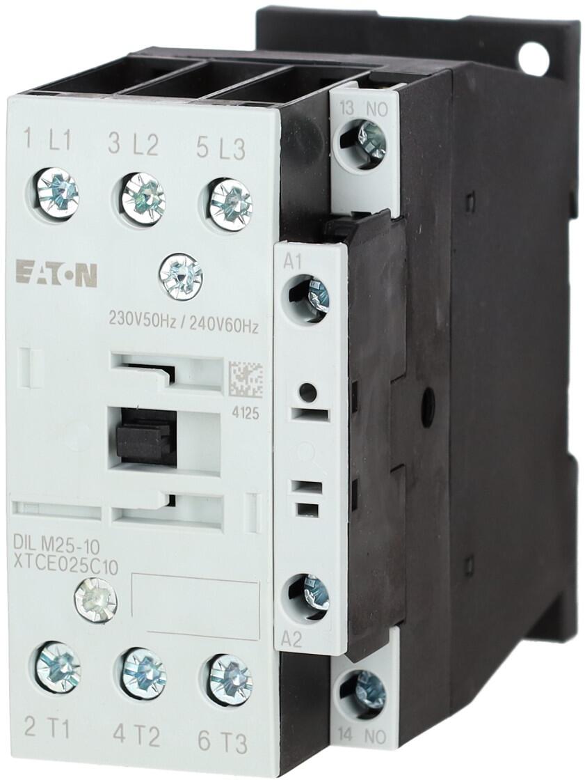 Applikation: Leistungsschütz für Motoren, Leistungsschütze bis 170 A, 3-polig, Gebrauchskategorie: AC-1: Nicht induktive oder schwach induktive Last, Widerstandsöfen, AC-3: Käfigläufermotoren: Anlassen, Ausschalten während des Laufes, AC-4: Käfigläufermotoren: Anlassen, Gegenstrombremsen, Reversieren, Tippen, Anschlusstechnik: Schraubklemmen, Hinweis: Geeignet auch für Motoren der Effizienzklasse IE3., IE3-fähige Geräte sind mit dem Logo auf der Verpackung gekennzeichnet., Pole: 3-polig, Bemessungsbetriebsstrom AC-3 380 V 400 V: Ie= 25 A, Bemessungsbetriebsstrom AC-1 konventioneller thermischer Strom