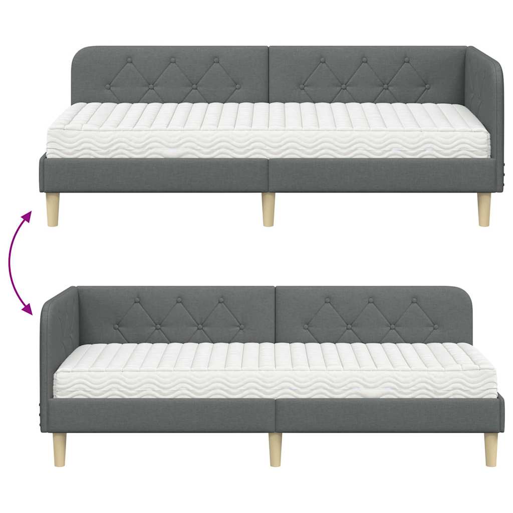 Dieses Stoff-Eckbettgestell kombiniert Style mit Funktionalität und ist perfekt für moderne urbane und vorstädtische Räume. Die rechteckige Form und die flexible L-Form sind ideal, um deinen Wohnraum optimal zu nutzen. Es fügt sich super in Schlafzimmer-Ecken ein und bietet Schlaf- und Sitzmöglichkeiten in einem, ohne auf Stil zu verzichten. Rahmenmaterialien: Atmungsaktiver Stoff sorgt für Komfort. Der Sperrholzrahmen ist leicht und stabil und bildet die Basis des Bettgestells. Zusammen ergeben sie ein solides und einladendes Element in deinem Schlafzimmer. Stoffmatratze: Die Schaumstoffmatratze passt sich perfekt deinem Körper an und bietet tollen Komfort. Perfekt für guten Schlaf und hält dich an kalten Tagen warm. Lattenrahmen: Der feste Lattenrahmen sorgt für gleichmäßige Unterstützung und belüftet die Matratze. Die stabilen Latten gewährleisten die richtige Festigkeit für erholsamen Schlaf. Vielseitige Anwendung: Funktioniert sowohl als Bett als auch als Sofa ? perfekt für Schlafzimmer, die flexibles Mobiliar brauchen. Das L-Design ist ideal für kleinere Räume und sieht dazu noch super aus. Einfacher Unterhalt: Die Reinigung geht schnell mit einem trockenen Tuch. So kannst du mehr Zeit in deinem Raum verbringen. Leichte Pflege sorgt dafür, dass das Bettgestell lang gut aussieht.