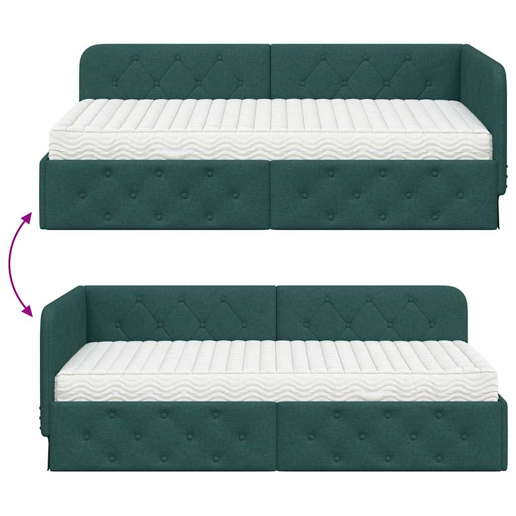 Das moderne Stoff-Eckbettgestell passt super in jede Ecke deines Schlafzimmers, spart Bodenfläche und verleiht deinem Raum einen besonderen Look. Mit seinem flexiblen Design kannst du es als gemütliches Tagesbett oder als komfortable Schlafgelegenheit nutzen. Das schlanke, rechteckige Rahmen-Design ist perfekt für kleine Wohnungen oder minimalistische Einrichtungsstile. Dieses Bettgestell vereint schickes Design mit Funktionalität und ist ideal für alle, die ihren Schlafraum optimal nutzen wollen, ohne auf Stil zu verzichten. Platzsparende Konstruktion Das L-förmige Design nutzt Ecken clever aus und schafft mehr Platz in deinem Schlafzimmer. Flexibles Kopfteil Du kannst das kürzere Kopfteil nach deinen Wünschen rechts oder links anbringen, was Flexibilität bietet. Multifunktionale Nutzung Einfach zwischen Sofa und Bett wechseln, perfekt für Gäste oder das gemütliche Chillen. Langlebige Bauweise Robustes Sperrholz sorgt für Stabilität, während der atmungsaktive Stoff für angenehmen Komfort sorgt. Einfache Pflege Ein trockener Wisch mit einem Tuch, und schon ist es wieder sauber ? ganz unkompliziert.