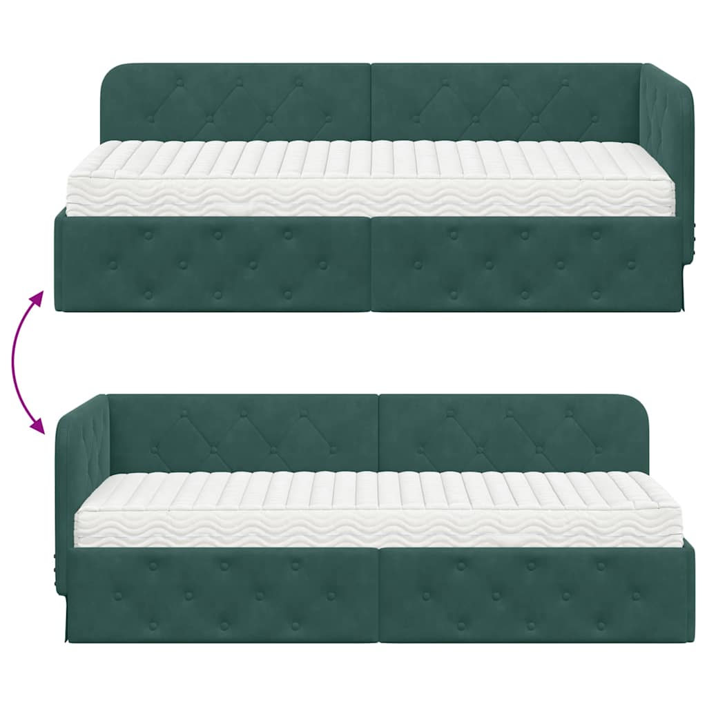 Dieses moderne Eckbettgestell bringt Funktionalität und Stil in jedes Schlafzimmer. Mit seinem schicken L-Design aus stabilen Sperrholzrahmen und weichem Samtbezug ist es ideal für Singles und Familien. Es kann sowohl als Sofa als auch als Bett genutzt werden. Der elegante Look verbunden mit den vielseitigen Einsatzmöglichkeiten macht es zum perfekten Möbel für jedes modern eingerichtete Zimmer und sorgt für mehr Komfort und Stil. Rechtwinklige Form: Die rechteckige Form von diesem Bettgestell passt perfekt in Ecken ? die ideale Lösung, um den Platz im Schlafzimmer besser zu nutzen. Sein schlankes Design fügt sich wunderbar in die moderne Einrichtung ein und bietet genug Platz zum Sitzen und Schlafen. Fester Lattenrost: Das Bettgestell hat einen stabilen Lattenrost aus hochwertigem Holz oder Metall. Dieser sorgt für zuverlässigen Halt und bleibt über die Zeit in Form, damit du gut schlafen kannst, ohne dass der Stil leidet. Samtmaterial: In luxuriösen Samt gehüllt, strahlt dieses Bettgestell Eleganz und Stil aus. Die weiche Oberfläche macht es zu einem einladenden Platz zum Entspannen oder Ausruhen und passt toll zu vielen verschiedenen Einrichtungsstilen. Integrierte Schaum-Matratze: Mitgeliefert wird eine Schaum-Matratze, die für ihren Komfort und ihre Druckentlastung bekannt ist. Sie passt sich deinem Körper an und sorgt so für einen erholsamen Schlaf. Pflegehinweise: Damit der Samt immer schön aussieht, einfach regelmäßig mit einem trockenen Tuch abwischen. Verzichte auf starke Chemikalien oder nasse Reinigungsmethoden, damit der Samt seine angenehme Haptik behält.