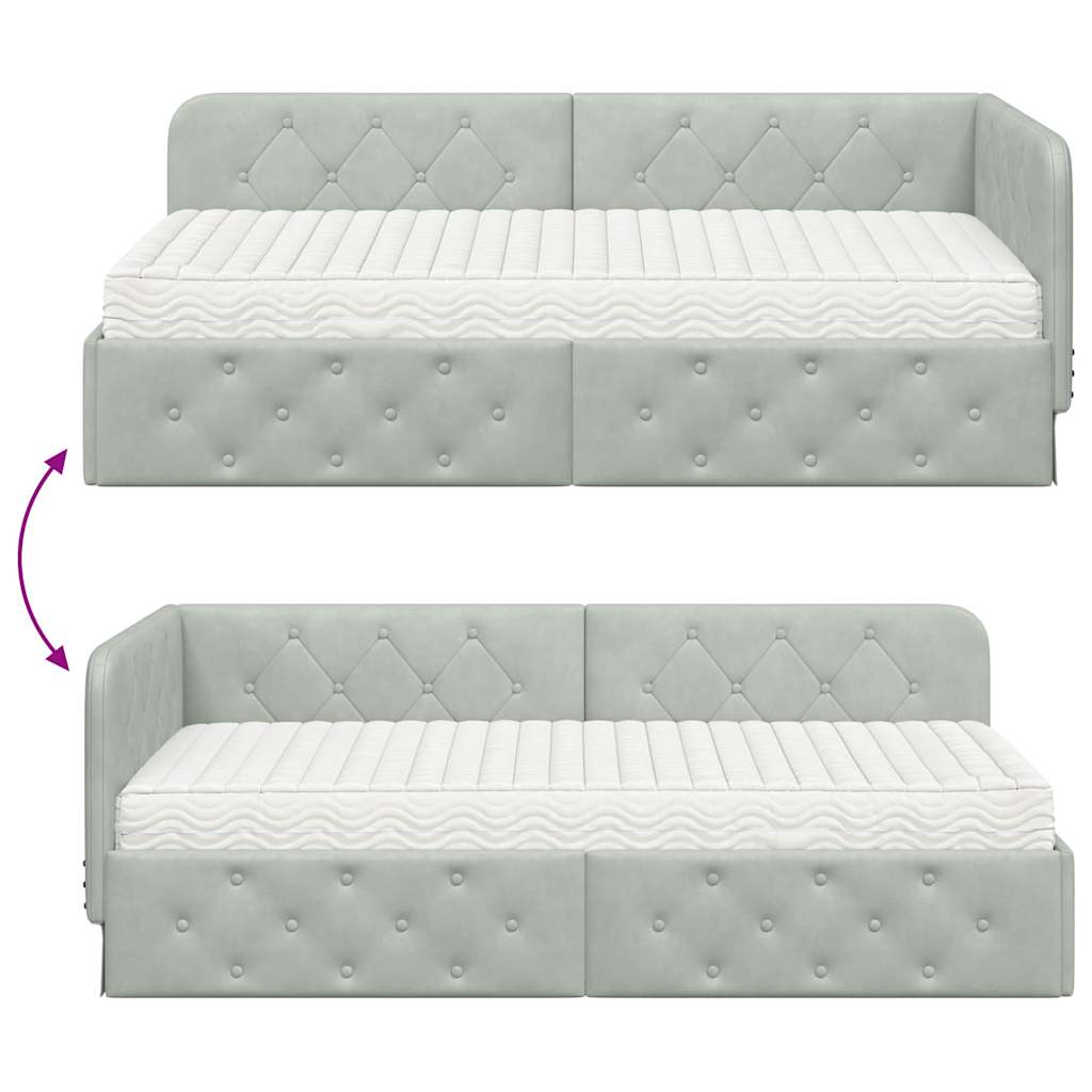 Dieses moderne Eckbettgestell bringt Funktionalität und Stil in jedes Schlafzimmer. Mit seinem schicken L-Design aus stabilen Sperrholzrahmen und weichem Samtbezug ist es ideal für Singles und Familien. Es kann sowohl als Sofa als auch als Bett genutzt werden. Der elegante Look verbunden mit den vielseitigen Einsatzmöglichkeiten macht es zum perfekten Möbel für jedes modern eingerichtete Zimmer und sorgt für mehr Komfort und Stil. Rechtwinklige Form: Die rechteckige Form von diesem Bettgestell passt perfekt in Ecken ? die ideale Lösung, um den Platz im Schlafzimmer besser zu nutzen. Sein schlankes Design fügt sich wunderbar in die moderne Einrichtung ein und bietet genug Platz zum Sitzen und Schlafen. Fester Lattenrost: Das Bettgestell hat einen stabilen Lattenrost aus hochwertigem Holz oder Metall. Dieser sorgt für zuverlässigen Halt und bleibt über die Zeit in Form, damit du gut schlafen kannst, ohne dass der Stil leidet. Samtmaterial: In luxuriösen Samt gehüllt, strahlt dieses Bettgestell Eleganz und Stil aus. Die weiche Oberfläche macht es zu einem einladenden Platz zum Entspannen oder Ausruhen und passt toll zu vielen verschiedenen Einrichtungsstilen. Integrierte Schaum-Matratze: Mitgeliefert wird eine Schaum-Matratze, die für ihren Komfort und ihre Druckentlastung bekannt ist. Sie passt sich deinem Körper an und sorgt so für einen erholsamen Schlaf. Pflegehinweise: Damit der Samt immer schön aussieht, einfach regelmäßig mit einem trockenen Tuch abwischen. Verzichte auf starke Chemikalien oder nasse Reinigungsmethoden, damit der Samt seine angenehme Haptik behält.