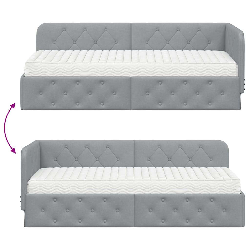 Das moderne Stoff-Eckbettgestell passt super in jede Ecke deines Schlafzimmers, spart Bodenfläche und verleiht deinem Raum einen besonderen Look. Mit seinem flexiblen Design kannst du es als gemütliches Tagesbett oder als komfortable Schlafgelegenheit nutzen. Das schlanke, rechteckige Rahmen-Design ist perfekt für kleine Wohnungen oder minimalistische Einrichtungsstile. Dieses Bettgestell vereint schickes Design mit Funktionalität und ist ideal für alle, die ihren Schlafraum optimal nutzen wollen, ohne auf Stil zu verzichten. Platzsparende Konstruktion Das L-förmige Design nutzt Ecken clever aus und schafft mehr Platz in deinem Schlafzimmer. Flexibles Kopfteil Du kannst das kürzere Kopfteil nach deinen Wünschen rechts oder links anbringen, was Flexibilität bietet. Multifunktionale Nutzung Einfach zwischen Sofa und Bett wechseln, perfekt für Gäste oder das gemütliche Chillen. Langlebige Bauweise Robustes Sperrholz sorgt für Stabilität, während der atmungsaktive Stoff für angenehmen Komfort sorgt. Einfache Pflege Ein trockener Wisch mit einem Tuch, und schon ist es wieder sauber ? ganz unkompliziert.