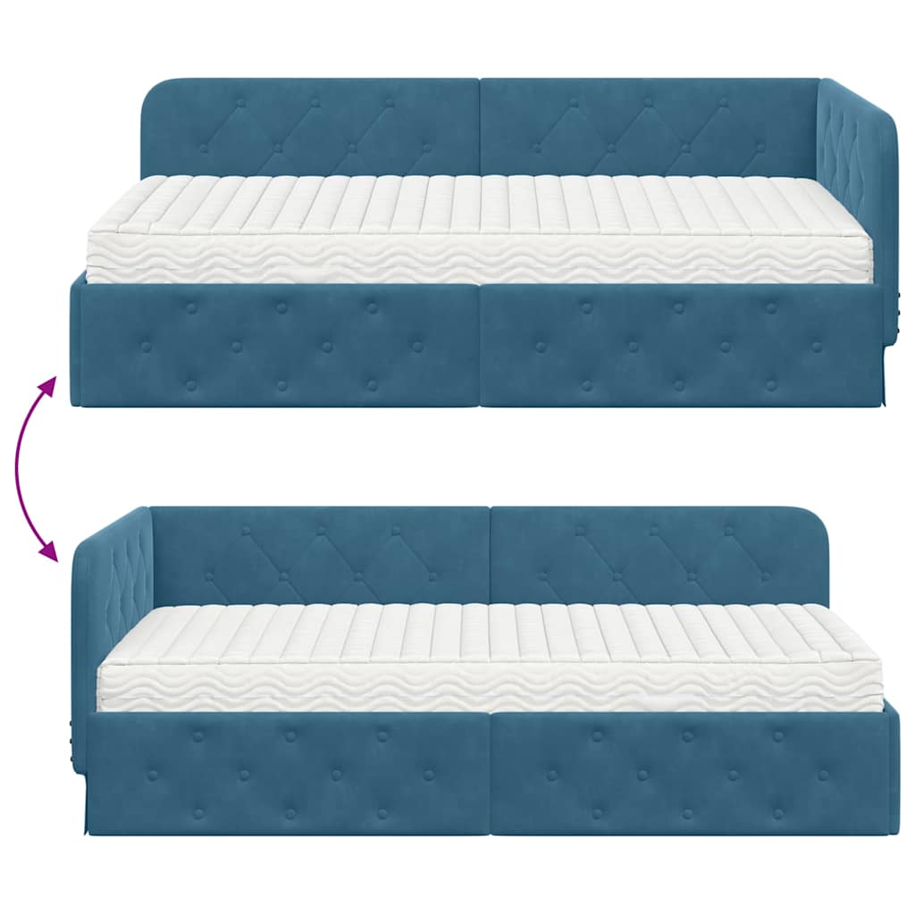 Dieses moderne Eckbettgestell bringt Funktionalität und Stil in jedes Schlafzimmer. Mit seinem schicken L-Design aus stabilen Sperrholzrahmen und weichem Samtbezug ist es ideal für Singles und Familien. Es kann sowohl als Sofa als auch als Bett genutzt werden. Der elegante Look verbunden mit den vielseitigen Einsatzmöglichkeiten macht es zum perfekten Möbel für jedes modern eingerichtete Zimmer und sorgt für mehr Komfort und Stil. Rechtwinklige Form: Die rechteckige Form von diesem Bettgestell passt perfekt in Ecken ? die ideale Lösung, um den Platz im Schlafzimmer besser zu nutzen. Sein schlankes Design fügt sich wunderbar in die moderne Einrichtung ein und bietet genug Platz zum Sitzen und Schlafen. Fester Lattenrost: Das Bettgestell hat einen stabilen Lattenrost aus hochwertigem Holz oder Metall. Dieser sorgt für zuverlässigen Halt und bleibt über die Zeit in Form, damit du gut schlafen kannst, ohne dass der Stil leidet. Samtmaterial: In luxuriösen Samt gehüllt, strahlt dieses Bettgestell Eleganz und Stil aus. Die weiche Oberfläche macht es zu einem einladenden Platz zum Entspannen oder Ausruhen und passt toll zu vielen verschiedenen Einrichtungsstilen. Integrierte Schaum-Matratze: Mitgeliefert wird eine Schaum-Matratze, die für ihren Komfort und ihre Druckentlastung bekannt ist. Sie passt sich deinem Körper an und sorgt so für einen erholsamen Schlaf. Pflegehinweise: Damit der Samt immer schön aussieht, einfach regelmäßig mit einem trockenen Tuch abwischen. Verzichte auf starke Chemikalien oder nasse Reinigungsmethoden, damit der Samt seine angenehme Haptik behält.