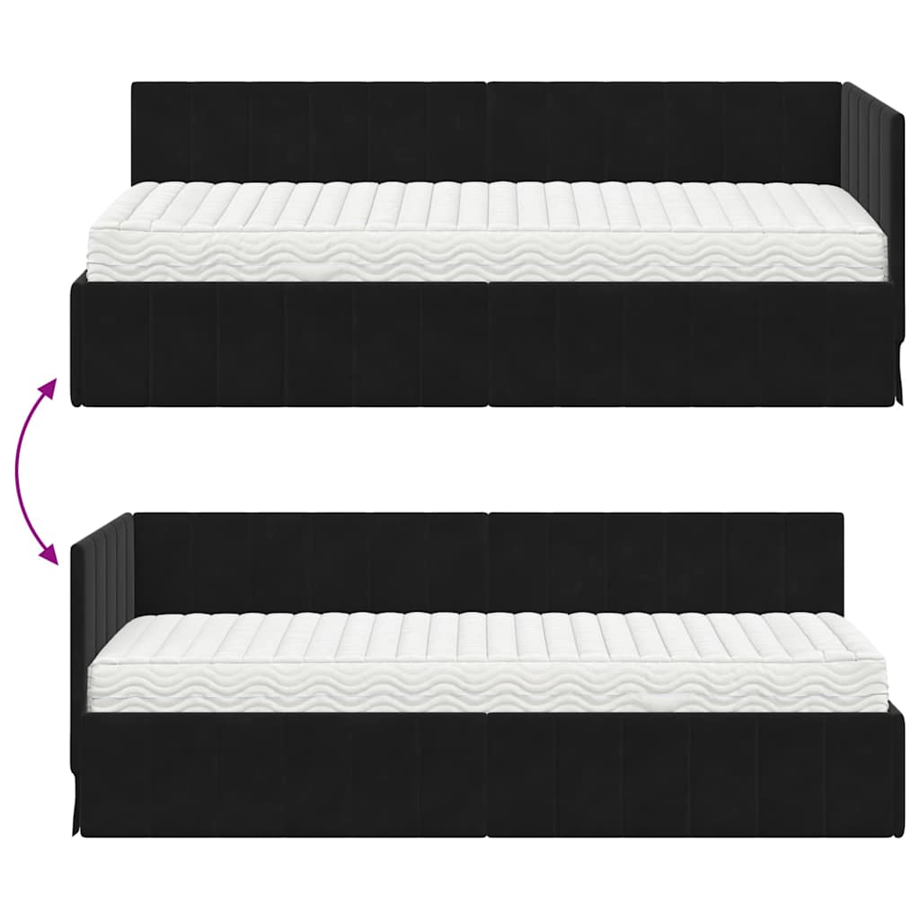 Das moderne rechteckige Velvet Corner Bed Frame ist der perfekte Blickfang für jedes stylische Schlafzimmer. Sein schlankes Design zusammen mit dem hochwertigen Samt-Headboard verleiht einen weichen Touch, der die Eleganz deines Raumes hebt. Aus Holzwerkstoff gefertigt, bietet es eine starke und langlebige Basis, genau das Richtige für Stadtbewohner und Minimalisten, die ihren Schlafbereich mit einem Hauch von Flair und Funktion aufpeppen wollen. Materialien: Das Bettgestell ist aus hochwertigem Holzwerkstoff und sieht damit robust und stylish aus. Dazu kommt das weiche Samt-Headboard, das eine gemütliche und luxuriöse Atmosphäre schafft. Es verspricht sowohl Stil als auch Langlebigkeit. Inklusive Komponenten: Du bekommst ein rechteckiges Eckbettgestell zusammen mit einer bequemen Schaumstoffmatratze. Diese Matratze unterstützt alle Körpertypen gut und hat eine mittlere Festigkeit, die verschiedene Schlafstile angenehm macht. Alles ist perfekt aufeinander abgestimmt für besseres Schlafen. Eigenschaften / Funktion: Die schlanken Beine geben den stabilen Halt, während sie den minimalistischen Look unterstützen. Der feste Lattenrost hält die Matratze sicher an ihrem Platz und trägt zur allgemeinen Festigkeit bei. Empfohlene Verwendung: Am besten für Schlafzimmer, passt der Rahmen gut zu modernen oder minimalistischen Umgebungen. Es ist sowohl ein praktischer Schlafplatz als auch ein stilvoller Hingucker, der Form und Funktion verbindet. Pflege & Wartung: Halte diese Schönheit in gutem Zustand, indem du die Oberfläche mit einem trockenen Tuch abwischst, um Staub fernzuhalten. Das Samt-Headboard braucht nur eine sanfte Behandlung mit einer weichen Bürste, um die tolle Textur frisch zu halten.