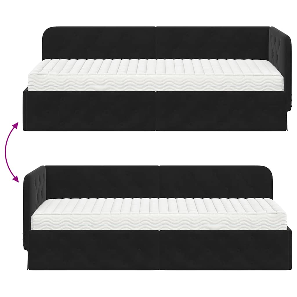 Dieses moderne Eckbettgestell bringt Funktionalität und Stil in jedes Schlafzimmer. Mit seinem schicken L-Design aus stabilen Sperrholzrahmen und weichem Samtbezug ist es ideal für Singles und Familien. Es kann sowohl als Sofa als auch als Bett genutzt werden. Der elegante Look verbunden mit den vielseitigen Einsatzmöglichkeiten macht es zum perfekten Möbel für jedes modern eingerichtete Zimmer und sorgt für mehr Komfort und Stil. Rechtwinklige Form: Die rechteckige Form von diesem Bettgestell passt perfekt in Ecken ? die ideale Lösung, um den Platz im Schlafzimmer besser zu nutzen. Sein schlankes Design fügt sich wunderbar in die moderne Einrichtung ein und bietet genug Platz zum Sitzen und Schlafen. Fester Lattenrost: Das Bettgestell hat einen stabilen Lattenrost aus hochwertigem Holz oder Metall. Dieser sorgt für zuverlässigen Halt und bleibt über die Zeit in Form, damit du gut schlafen kannst, ohne dass der Stil leidet. Samtmaterial: In luxuriösen Samt gehüllt, strahlt dieses Bettgestell Eleganz und Stil aus. Die weiche Oberfläche macht es zu einem einladenden Platz zum Entspannen oder Ausruhen und passt toll zu vielen verschiedenen Einrichtungsstilen. Integrierte Schaum-Matratze: Mitgeliefert wird eine Schaum-Matratze, die für ihren Komfort und ihre Druckentlastung bekannt ist. Sie passt sich deinem Körper an und sorgt so für einen erholsamen Schlaf. Pflegehinweise: Damit der Samt immer schön aussieht, einfach regelmäßig mit einem trockenen Tuch abwischen. Verzichte auf starke Chemikalien oder nasse Reinigungsmethoden, damit der Samt seine angenehme Haptik behält.