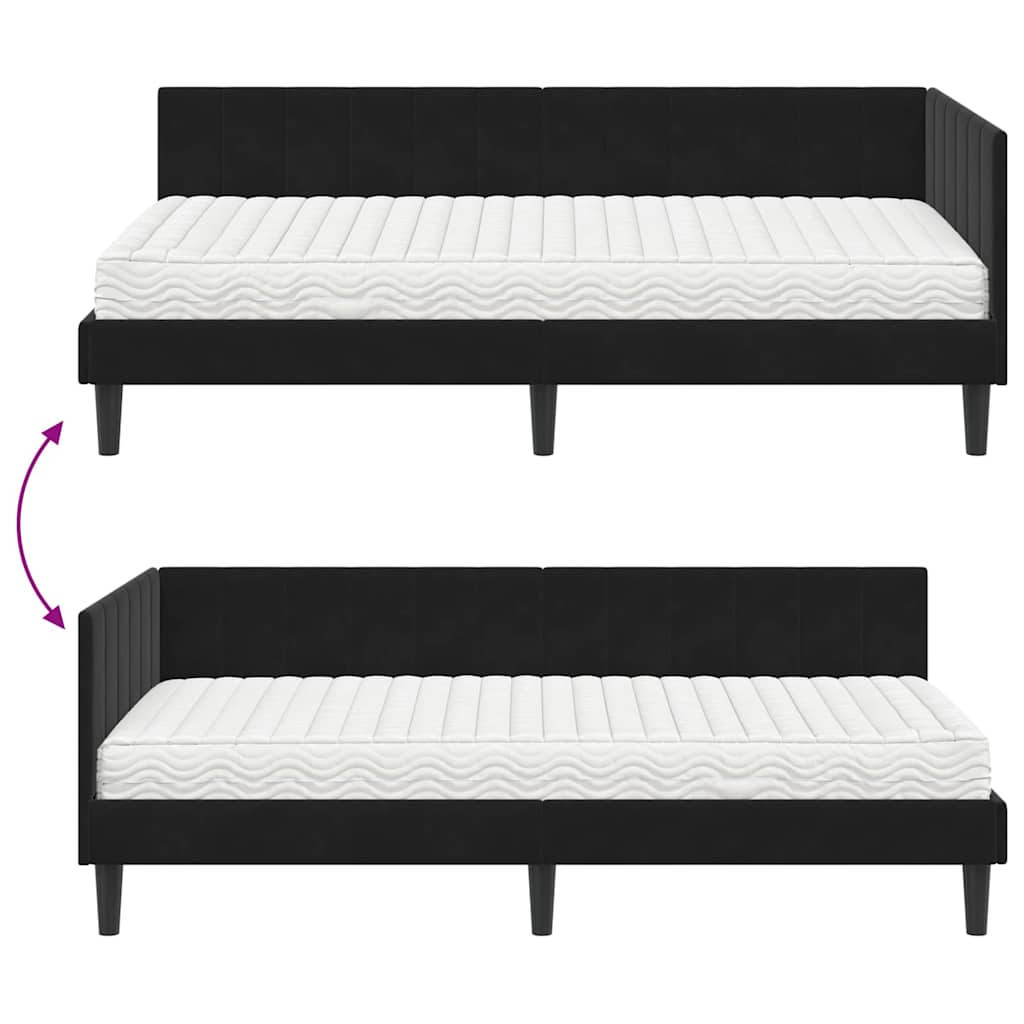 Das Samt-Eckbettgestell verbindet modernes Design mit robuster Praktikabilität ? perfekt für jedes Schlafzimmer. Mit seinen klaren, einfachen Linien bringt es einen trendigen Vibe in dein Zimmer und ist gleichzeitig super bequem. Dieses Bettgestell bietet dir soliden, sanften Halt und passt sich toll der Atmosphäre deines Raumes an. Es ist genau das Richtige für alle, die nach einem zeitlosen Design suchen, das zu vielen Einrichtungsstilen passt und deinem Schlafzimmer einen Hauch von Luxus verleiht. Mach dein Schlafgefühl besser mit diesem smarten Bettgestell, das sowohl auf funktionale als auch auf stilvolle Aspekte achtet. Modernes Design: Gestaltet für zeitgemäße Schlafzimmer, besticht der minimalistische Stil mit klaren Linien. Die Materialien verbinden Funktionalität mit tollem Aussehen, sodass es zeitlos und ansprechend bleibt. Bequeme Matratze: Mit einer mittelfesten Schaumstoffmatratze ausgestattet, die soliden Halt und Druckausgleich für verschiedene Schlafpositionen bietet. Diese Matratze sorgt für das perfekte Gleichgewicht zwischen Festigkeit und gemütlichem Komfort, perfekt für lange, entspannende Nächte. Robuste Konstruktion: Hergestellt aus Holz und stabilen Komponenten für einen verlässlichen Rahmen. Du kannst dir sicher sein, dass es langlebig ist und auch nach jahrelangem Gebrauch hält. Weich-touch Finish: Genieße das luxuriöse Gefühl von Samt, das das Gesamtbild aufwertet. Die Textur ist angenehm und bringt Wärme und Stil in deinen Raum. Montageanforderungen: Du brauchst zwei Leute und nur einen Schraubendreher zum Aufbauen. Es ist einfach und schnell ? so ist dein Schlafzimmer im Handumdrehen bereit und du kannst schnell in die bequeme Entspannung eintauchen.
