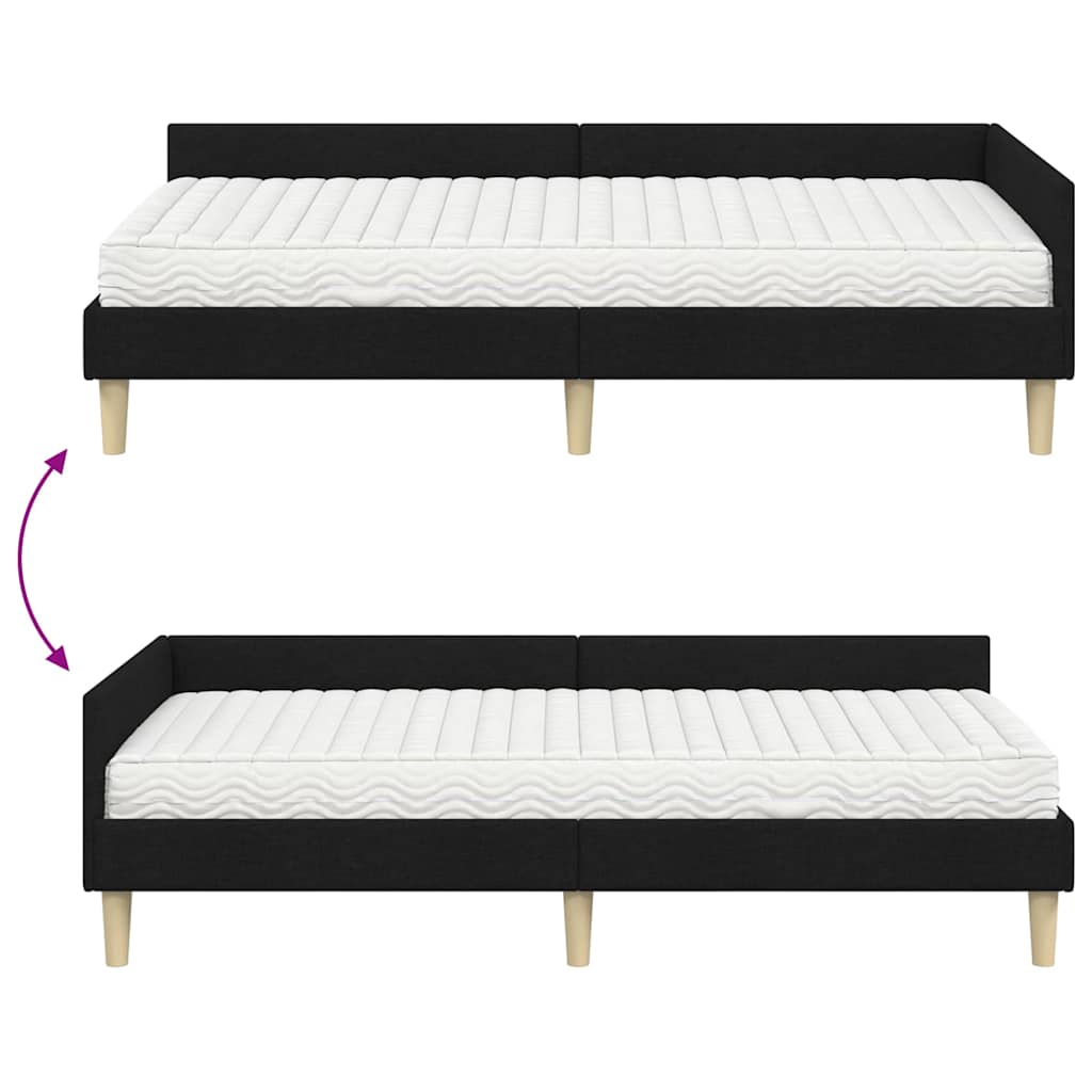 Dieses stylische Eckbettgestell mit Matratze vereint modernes Design mit praktischer Eleganz. Der glatte Stoff sieht nicht nur toll aus, sondern macht das Bett zum Hingucker im Schlafzimmer. Durchdacht gestaltet für einfachen Stil und erholsamen Schlaf, wird dieses Plattformbett allen Schlafgewohnheiten gerecht. Hochwertige Materialien: Aus strapazierfähigem Sperrholz und hochwertigem Stoff gefertigt, bringt dieses Bett Langlebigkeit und Eleganz in dein Zimmer. Der atmungsaktive Stoff sorgt für gute Luftzirkulation und ein frisches Schlafklima, während das Holz für Stabilität und Langlebigkeit sorgt. Funktionale Komponenten: Das Bett hat ein verstellbares Kopfteil aus Polyester, das nicht nur optisch gut aussieht, sondern sich auch an unterschiedliche Bedürfnisse anpasst. Mit stabilen Lattenrahmen bietet es nicht nur schönen Style, sondern auch Funktionalität. Durchdachte Merkmale: Dieses Plattformbett hat eine Matratze mit mittlerer Festigkeit, die ideal für alle Schlaftypen ist. Die Polyurethan-Schaummatratze sorgt für schnelle Anpassung und super Komfort. Vielfältige Einsatzmöglichkeiten: Super für moderne Schlafzimmer, die Eleganz des Bettes passt in viele Einrichtungsstile. Es verwandelt jeden Raum in ein persönliches Refugium, das Stil und Funktion vereint. Pflege & Wartung: Wisch einfach mit einem trockenen Tuch über das Bett, um es sauber zu halten und lange Freude daran zu haben. Montage ist mit zwei Personen und einem Schraubendreher am einfachsten.