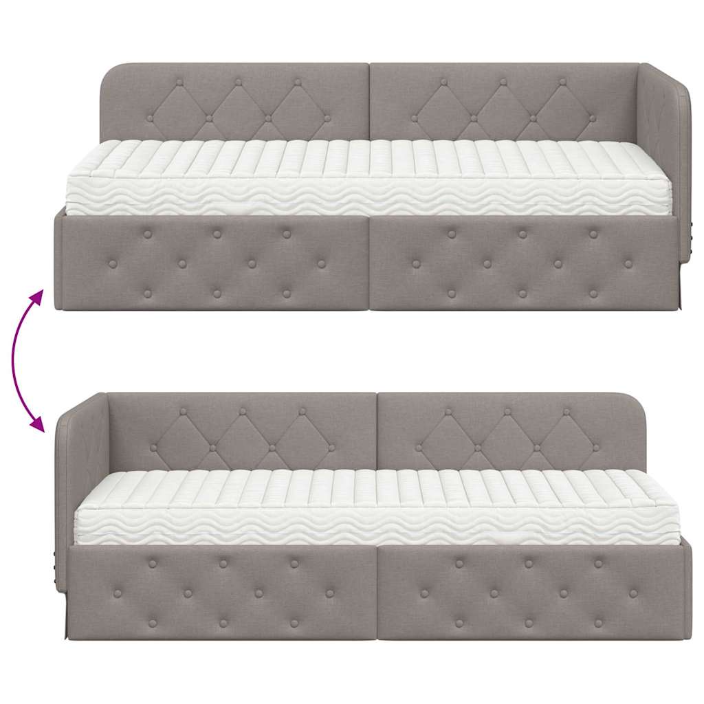 Das moderne Stoff-Eckbettgestell passt super in jede Ecke deines Schlafzimmers, spart Bodenfläche und verleiht deinem Raum einen besonderen Look. Mit seinem flexiblen Design kannst du es als gemütliches Tagesbett oder als komfortable Schlafgelegenheit nutzen. Das schlanke, rechteckige Rahmen-Design ist perfekt für kleine Wohnungen oder minimalistische Einrichtungsstile. Dieses Bettgestell vereint schickes Design mit Funktionalität und ist ideal für alle, die ihren Schlafraum optimal nutzen wollen, ohne auf Stil zu verzichten. Platzsparende Konstruktion Das L-förmige Design nutzt Ecken clever aus und schafft mehr Platz in deinem Schlafzimmer. Flexibles Kopfteil Du kannst das kürzere Kopfteil nach deinen Wünschen rechts oder links anbringen, was Flexibilität bietet. Multifunktionale Nutzung Einfach zwischen Sofa und Bett wechseln, perfekt für Gäste oder das gemütliche Chillen. Langlebige Bauweise Robustes Sperrholz sorgt für Stabilität, während der atmungsaktive Stoff für angenehmen Komfort sorgt. Einfache Pflege Ein trockener Wisch mit einem Tuch, und schon ist es wieder sauber ? ganz unkompliziert.