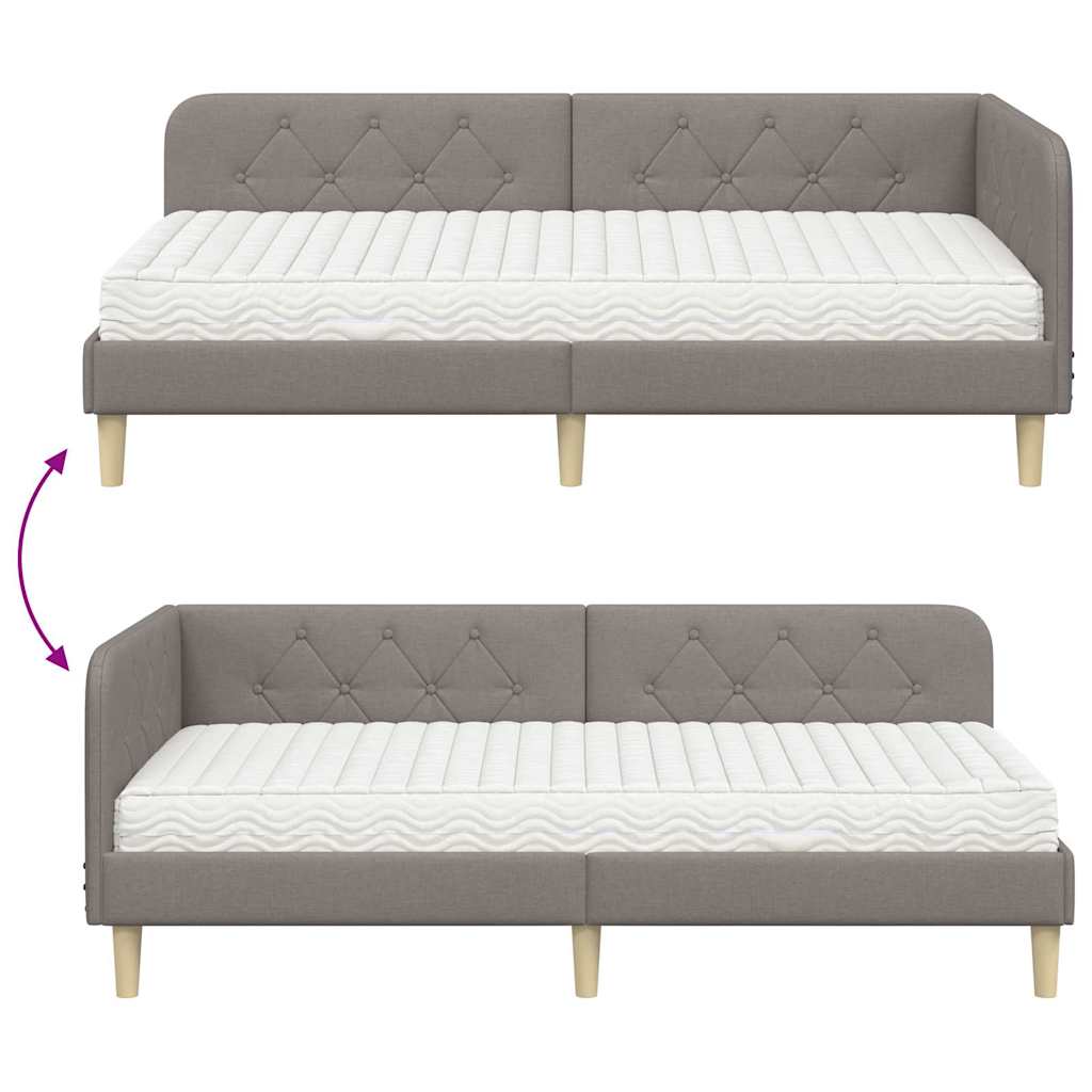 Dieses Stoff-Eckbettgestell kombiniert Style mit Funktionalität und ist perfekt für moderne urbane und vorstädtische Räume. Die rechteckige Form und die flexible L-Form sind ideal, um deinen Wohnraum optimal zu nutzen. Es fügt sich super in Schlafzimmer-Ecken ein und bietet Schlaf- und Sitzmöglichkeiten in einem, ohne auf Stil zu verzichten. Rahmenmaterialien: Atmungsaktiver Stoff sorgt für Komfort. Der Sperrholzrahmen ist leicht und stabil und bildet die Basis des Bettgestells. Zusammen ergeben sie ein solides und einladendes Element in deinem Schlafzimmer. Stoffmatratze: Die Schaumstoffmatratze passt sich perfekt deinem Körper an und bietet tollen Komfort. Perfekt für guten Schlaf und hält dich an kalten Tagen warm. Lattenrahmen: Der feste Lattenrahmen sorgt für gleichmäßige Unterstützung und belüftet die Matratze. Die stabilen Latten gewährleisten die richtige Festigkeit für erholsamen Schlaf. Vielseitige Anwendung: Funktioniert sowohl als Bett als auch als Sofa ? perfekt für Schlafzimmer, die flexibles Mobiliar brauchen. Das L-Design ist ideal für kleinere Räume und sieht dazu noch super aus. Einfacher Unterhalt: Die Reinigung geht schnell mit einem trockenen Tuch. So kannst du mehr Zeit in deinem Raum verbringen. Leichte Pflege sorgt dafür, dass das Bettgestell lang gut aussieht.