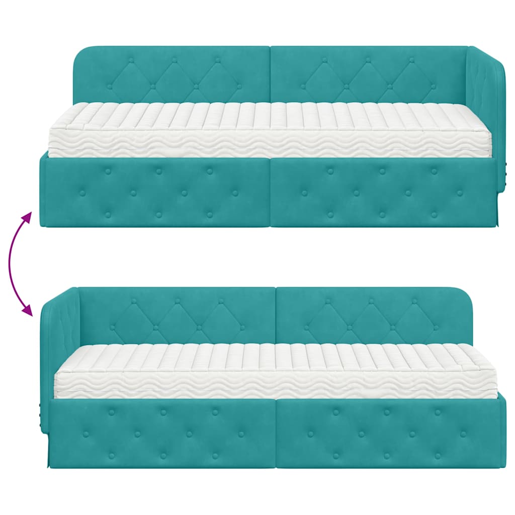 Dieses moderne Eckbettgestell bringt Funktionalität und Stil in jedes Schlafzimmer. Mit seinem schicken L-Design aus stabilen Sperrholzrahmen und weichem Samtbezug ist es ideal für Singles und Familien. Es kann sowohl als Sofa als auch als Bett genutzt werden. Der elegante Look verbunden mit den vielseitigen Einsatzmöglichkeiten macht es zum perfekten Möbel für jedes modern eingerichtete Zimmer und sorgt für mehr Komfort und Stil. Rechtwinklige Form: Die rechteckige Form von diesem Bettgestell passt perfekt in Ecken ? die ideale Lösung, um den Platz im Schlafzimmer besser zu nutzen. Sein schlankes Design fügt sich wunderbar in die moderne Einrichtung ein und bietet genug Platz zum Sitzen und Schlafen. Fester Lattenrost: Das Bettgestell hat einen stabilen Lattenrost aus hochwertigem Holz oder Metall. Dieser sorgt für zuverlässigen Halt und bleibt über die Zeit in Form, damit du gut schlafen kannst, ohne dass der Stil leidet. Samtmaterial: In luxuriösen Samt gehüllt, strahlt dieses Bettgestell Eleganz und Stil aus. Die weiche Oberfläche macht es zu einem einladenden Platz zum Entspannen oder Ausruhen und passt toll zu vielen verschiedenen Einrichtungsstilen. Integrierte Schaum-Matratze: Mitgeliefert wird eine Schaum-Matratze, die für ihren Komfort und ihre Druckentlastung bekannt ist. Sie passt sich deinem Körper an und sorgt so für einen erholsamen Schlaf. Pflegehinweise: Damit der Samt immer schön aussieht, einfach regelmäßig mit einem trockenen Tuch abwischen. Verzichte auf starke Chemikalien oder nasse Reinigungsmethoden, damit der Samt seine angenehme Haptik behält.