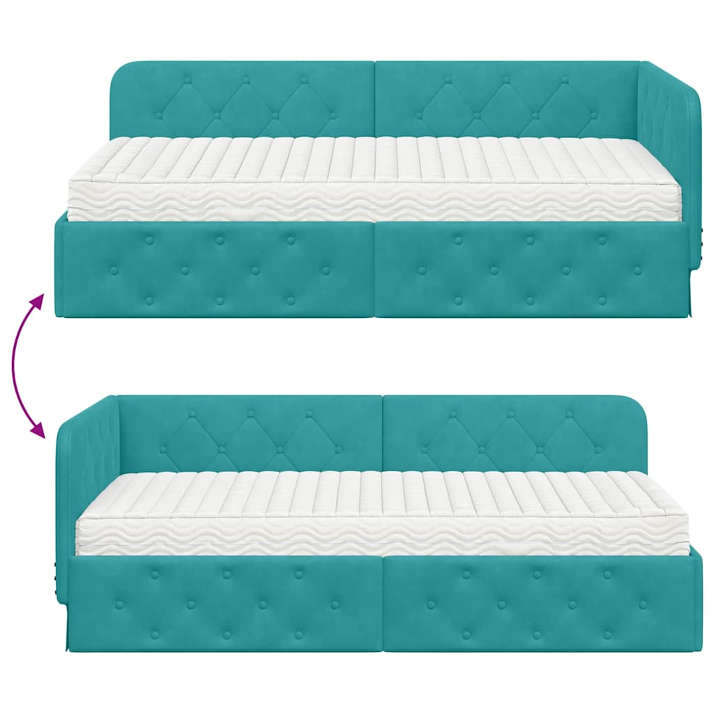 Dieses moderne Eckbettgestell bringt Funktionalität und Stil in jedes Schlafzimmer. Mit seinem schicken L-Design aus stabilen Sperrholzrahmen und weichem Samtbezug ist es ideal für Singles und Familien. Es kann sowohl als Sofa als auch als Bett genutzt werden. Der elegante Look verbunden mit den vielseitigen Einsatzmöglichkeiten macht es zum perfekten Möbel für jedes modern eingerichtete Zimmer und sorgt für mehr Komfort und Stil. Rechtwinklige Form: Die rechteckige Form von diesem Bettgestell passt perfekt in Ecken ? die ideale Lösung, um den Platz im Schlafzimmer besser zu nutzen. Sein schlankes Design fügt sich wunderbar in die moderne Einrichtung ein und bietet genug Platz zum Sitzen und Schlafen. Fester Lattenrost: Das Bettgestell hat einen stabilen Lattenrost aus hochwertigem Holz oder Metall. Dieser sorgt für zuverlässigen Halt und bleibt über die Zeit in Form, damit du gut schlafen kannst, ohne dass der Stil leidet. Samtmaterial: In luxuriösen Samt gehüllt, strahlt dieses Bettgestell Eleganz und Stil aus. Die weiche Oberfläche macht es zu einem einladenden Platz zum Entspannen oder Ausruhen und passt toll zu vielen verschiedenen Einrichtungsstilen. Integrierte Schaum-Matratze: Mitgeliefert wird eine Schaum-Matratze, die für ihren Komfort und ihre Druckentlastung bekannt ist. Sie passt sich deinem Körper an und sorgt so für einen erholsamen Schlaf. Pflegehinweise: Damit der Samt immer schön aussieht, einfach regelmäßig mit einem trockenen Tuch abwischen. Verzichte auf starke Chemikalien oder nasse Reinigungsmethoden, damit der Samt seine angenehme Haptik behält.